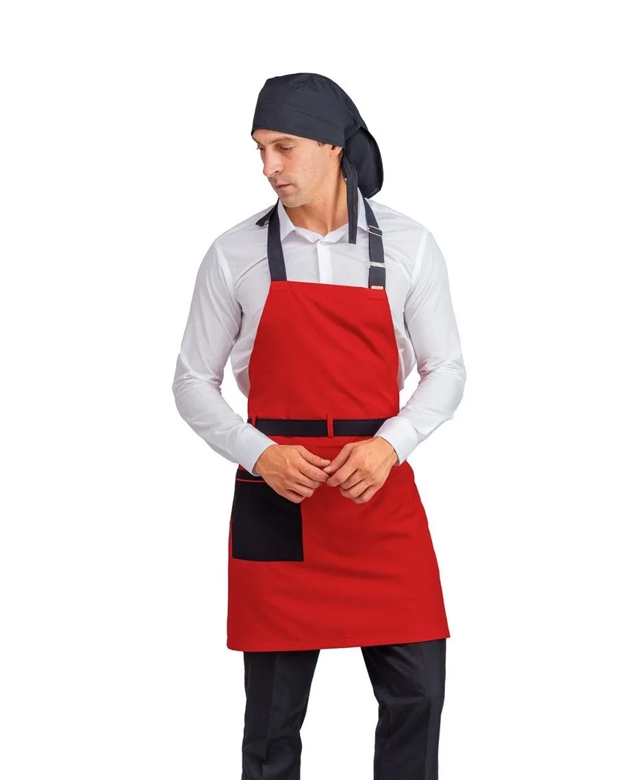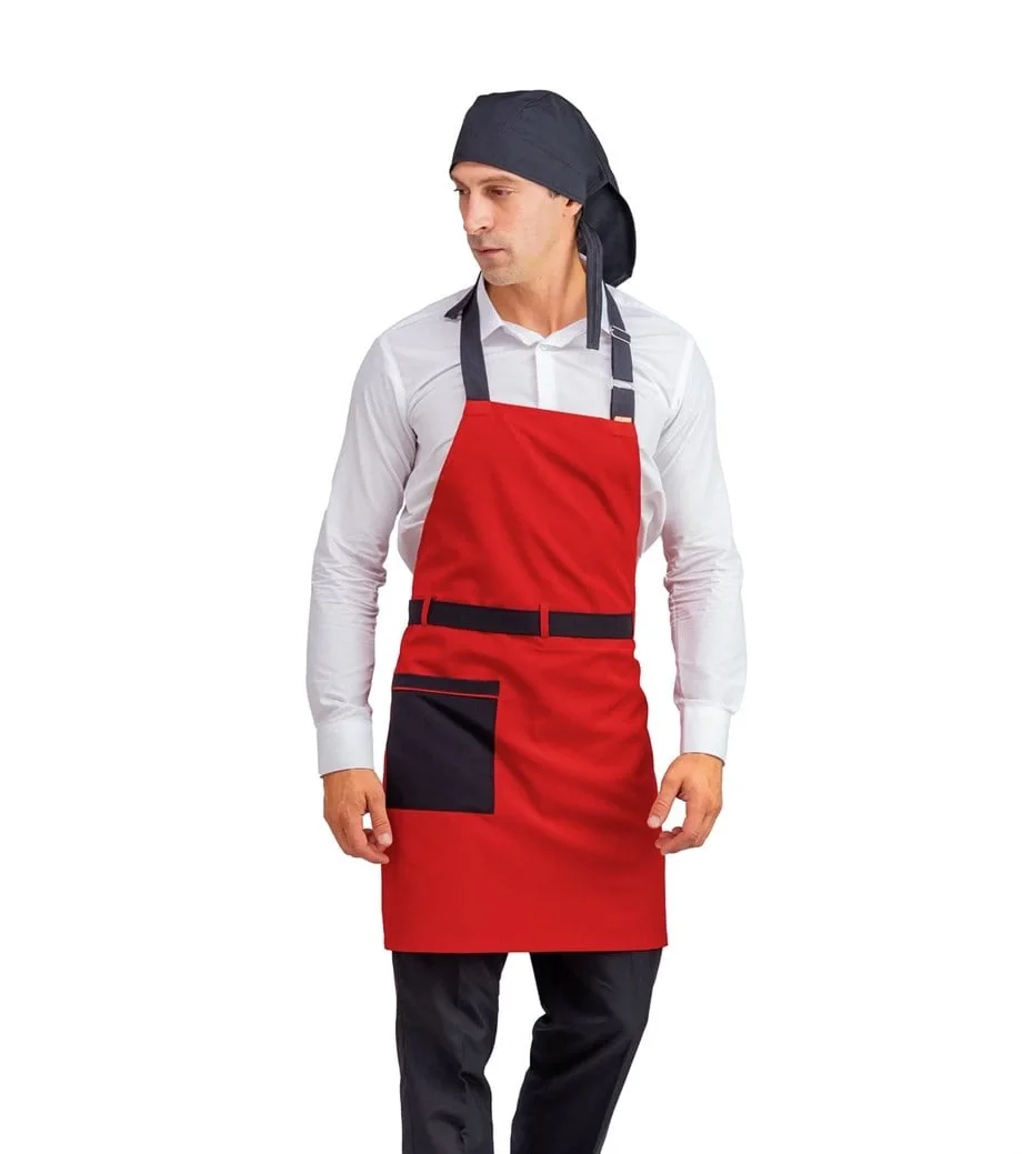 Barista Askılı Önlük Tek Cepli Deri Kemerli - Bordo