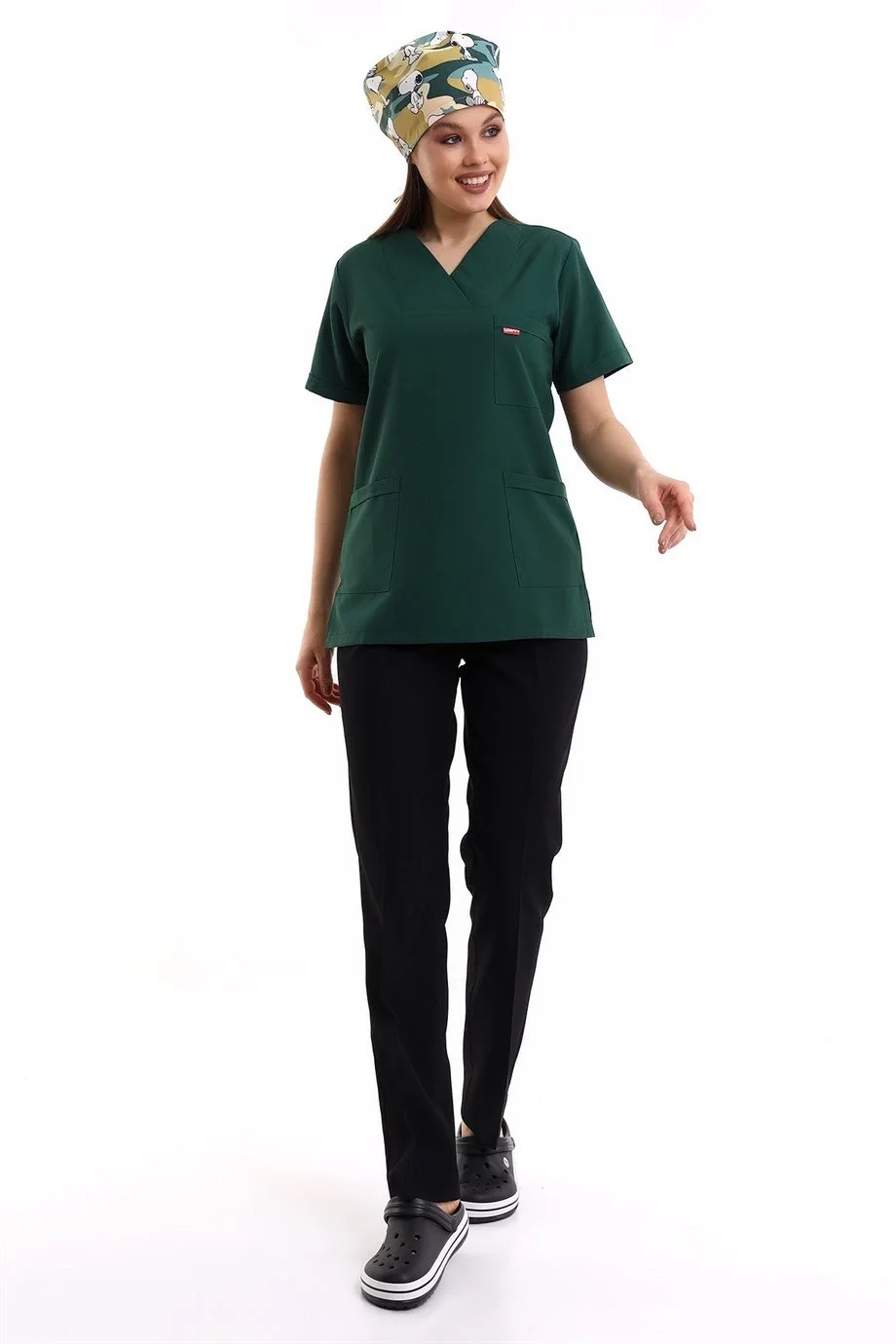 Zarf Yaka Kadın Tek Üst - 30 Ameliyathane Yeşili