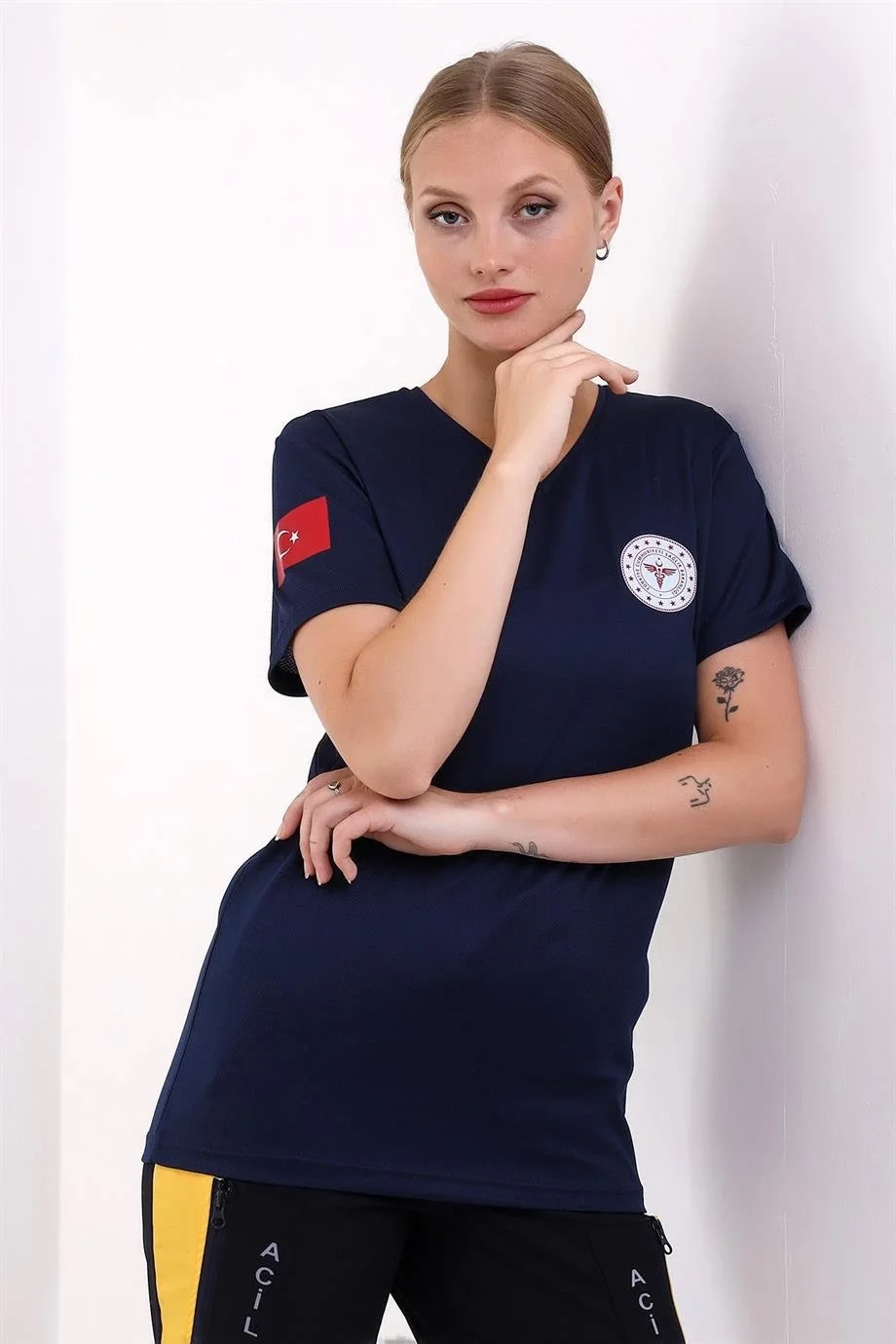 Acil Sağlık Yuvarlak Yaka Penye Tunik Baskılı - Lacivert