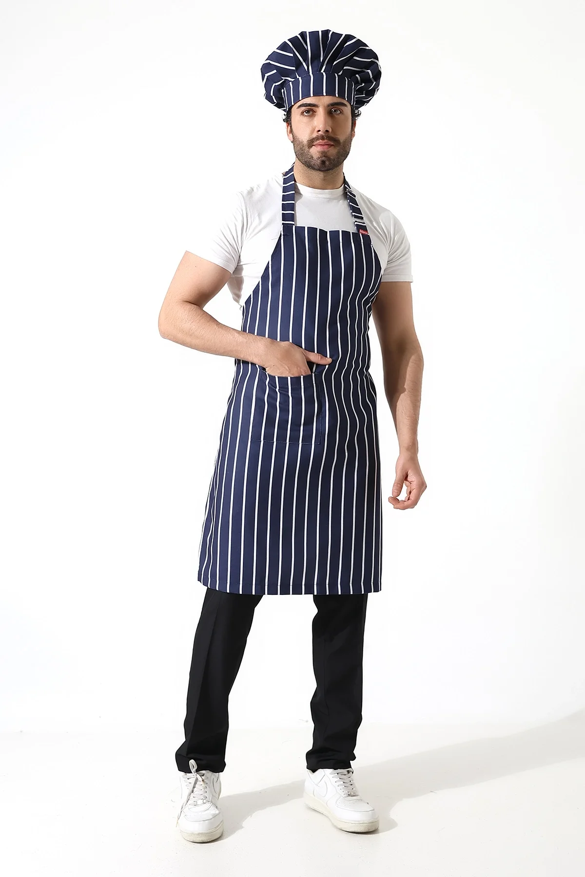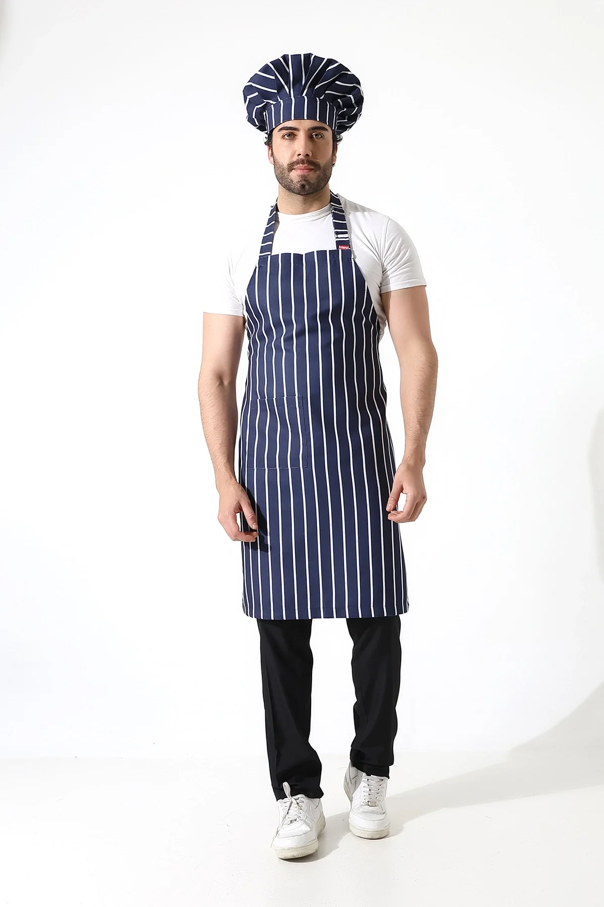 Desenli Askılı Önlük - 3004 Beyaz Çizgi