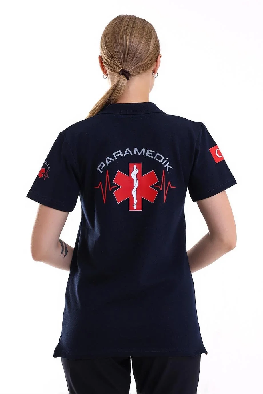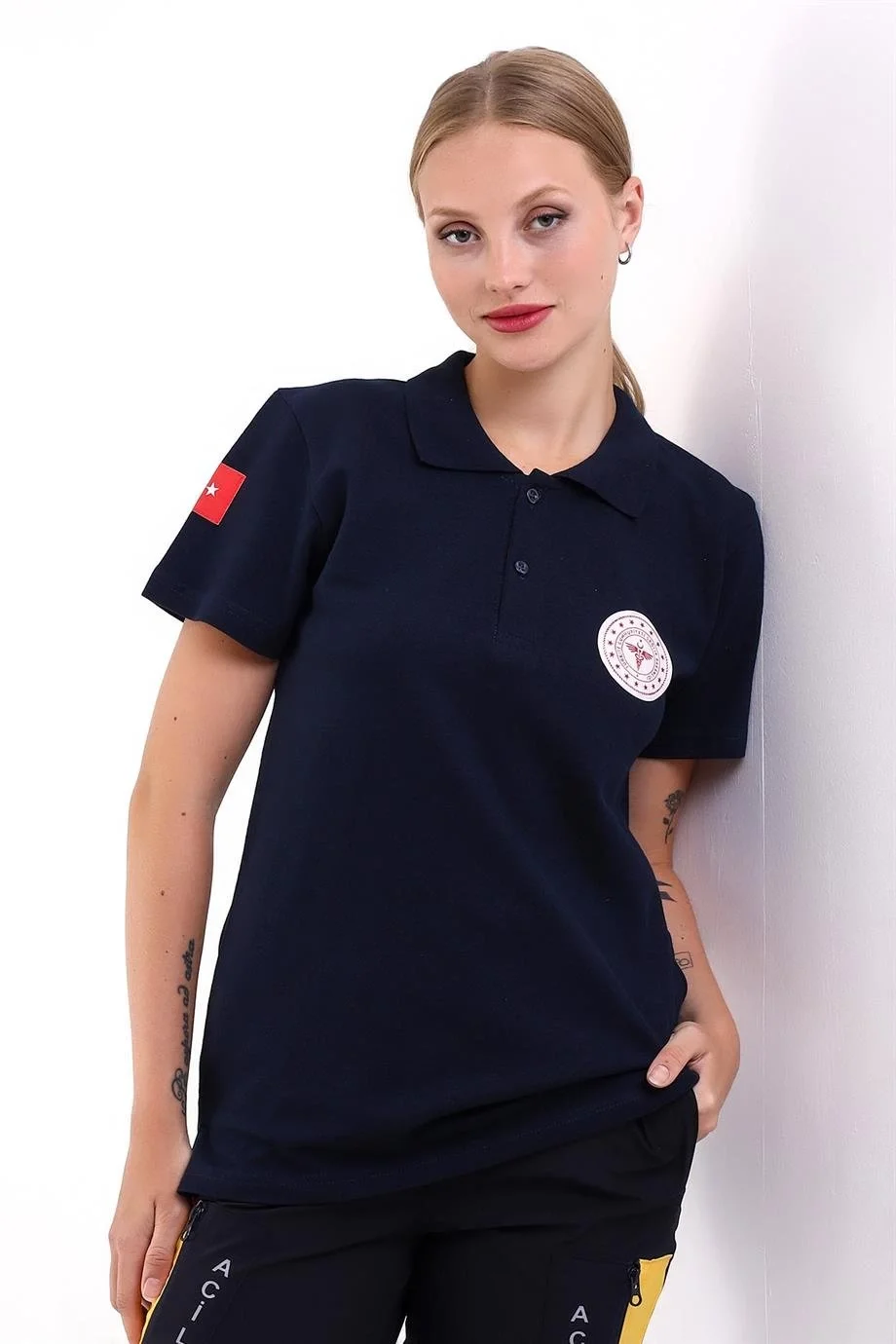 112 Acil Sağlık Yakalı Tshirt Tunik Baskılı - Lacivert