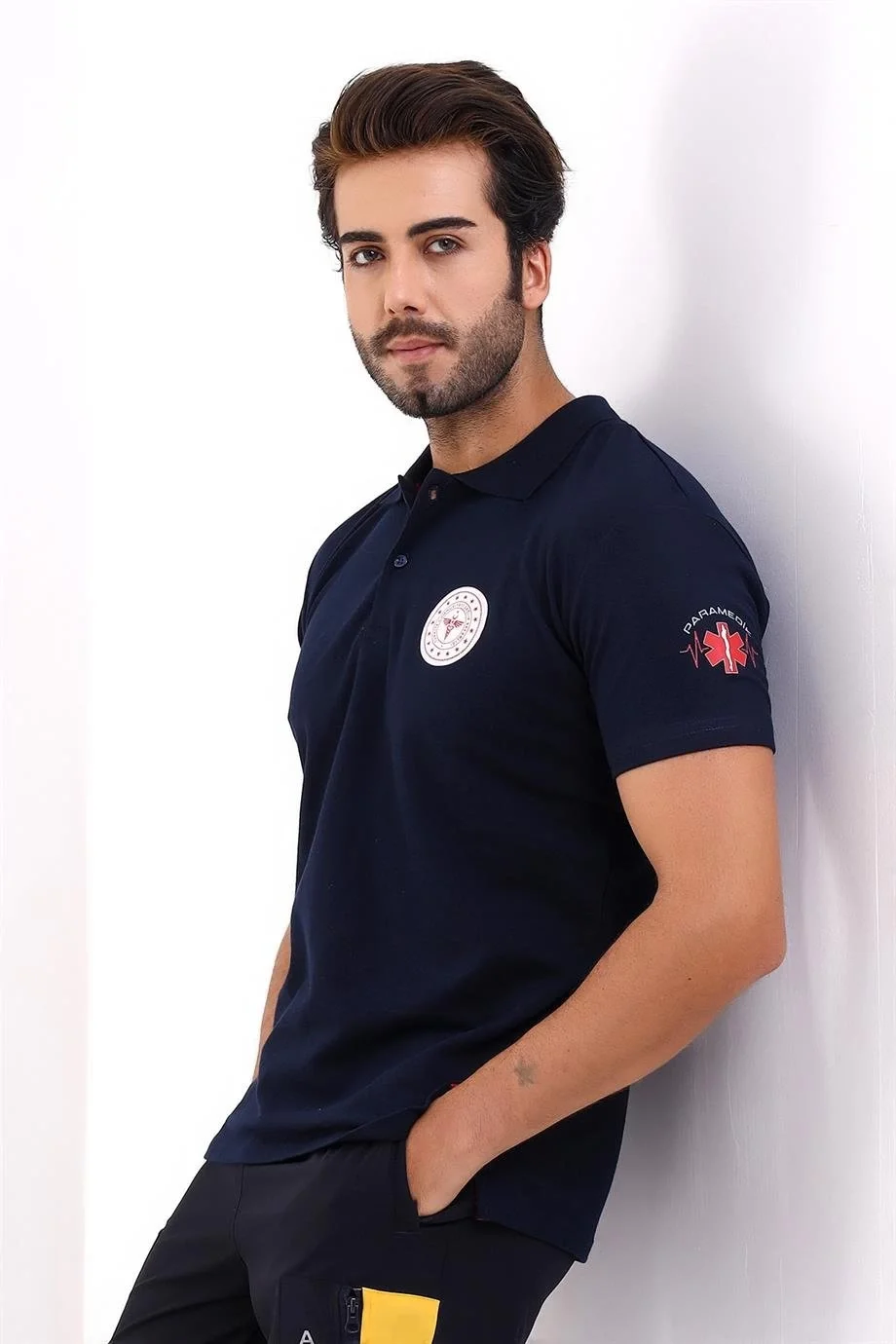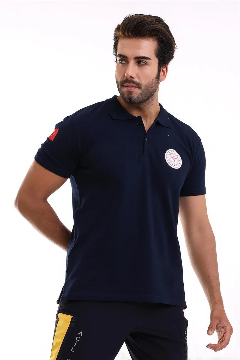 112 Acil Sağlık Yakalı Tshirt Kısa Kol Baskılı - Lacivert
