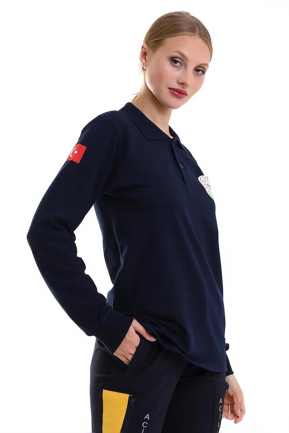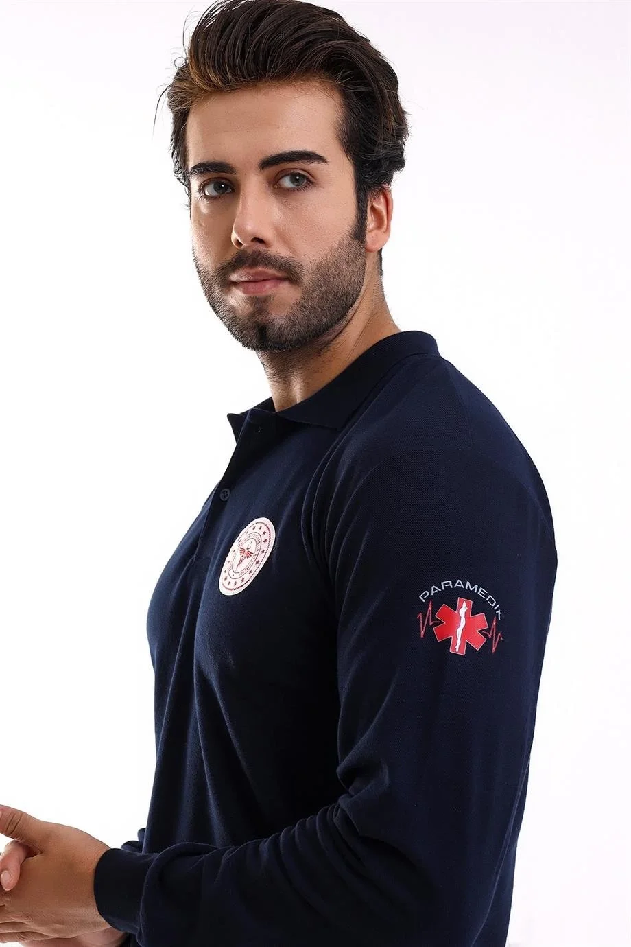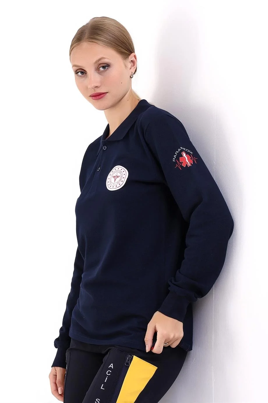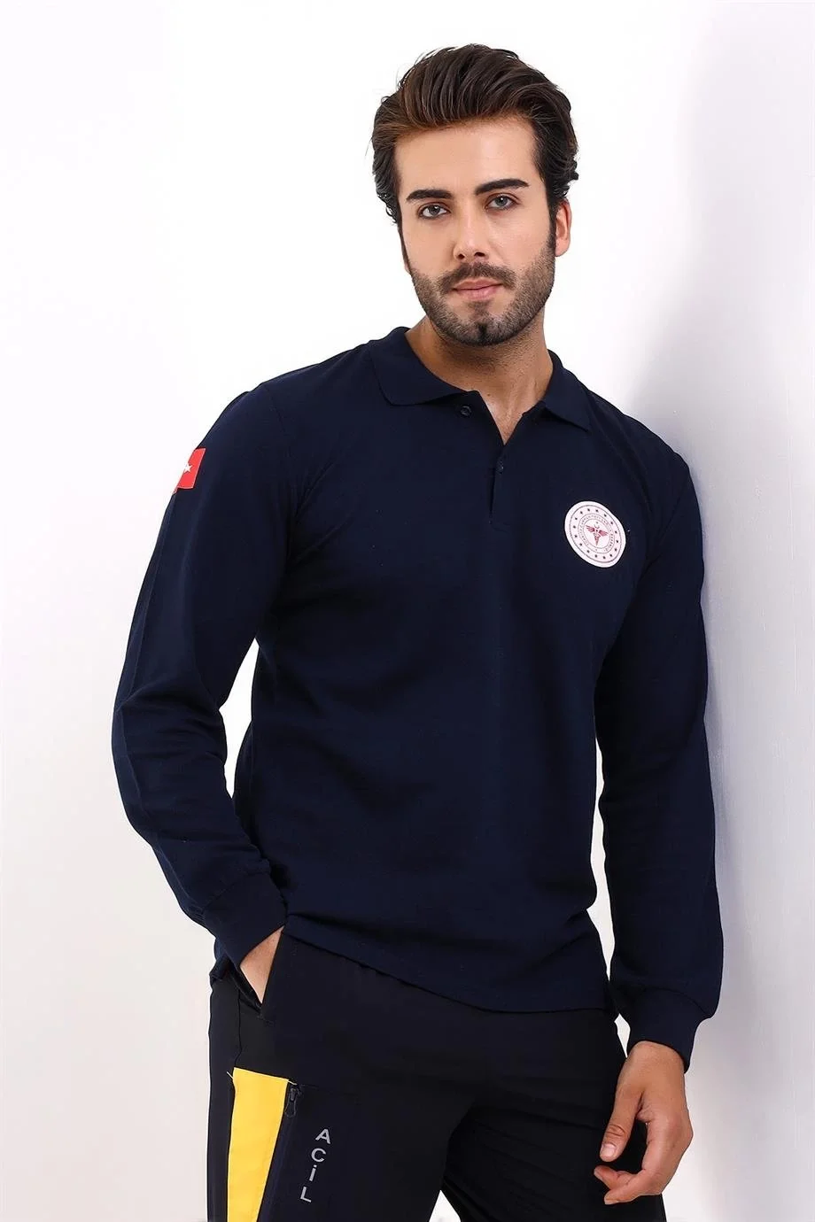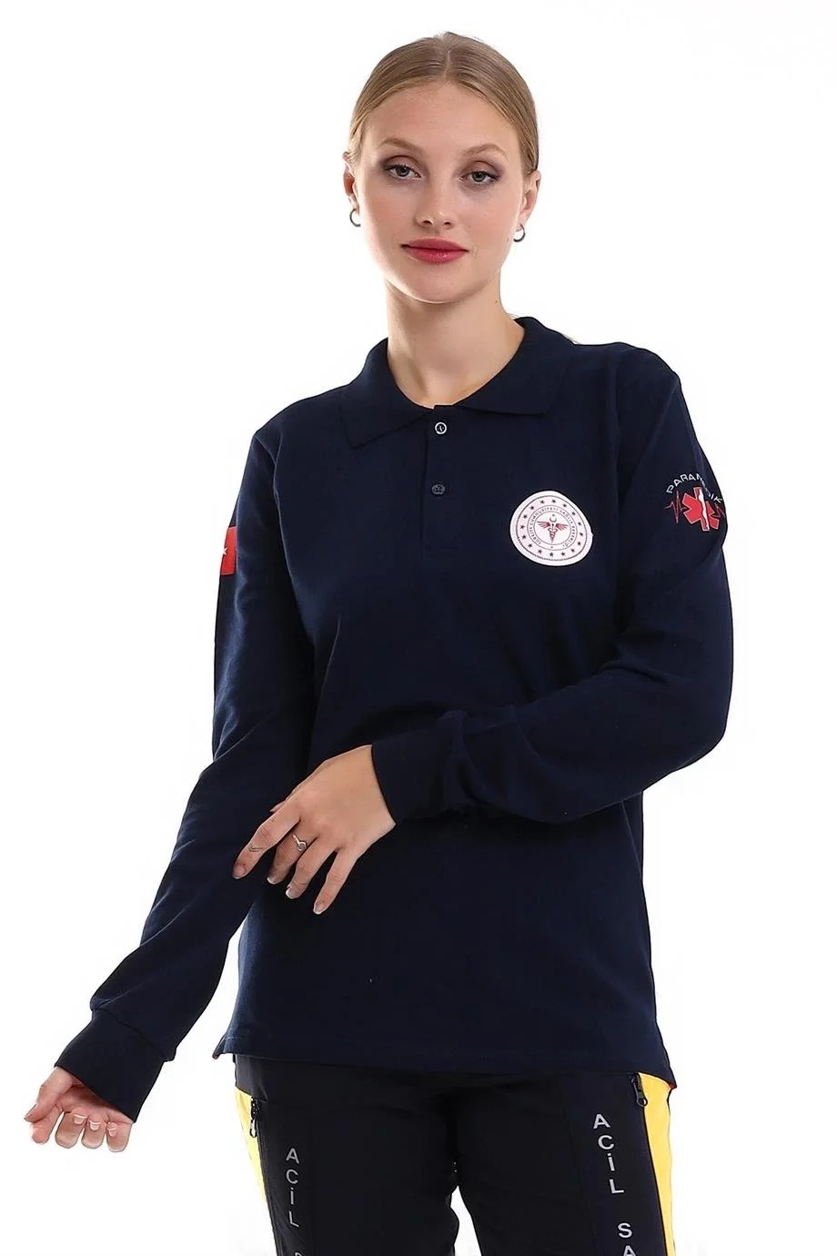 112 Acil Sağlık Yakalı Tshirt Uzun Kol Baskılı - Lacivert