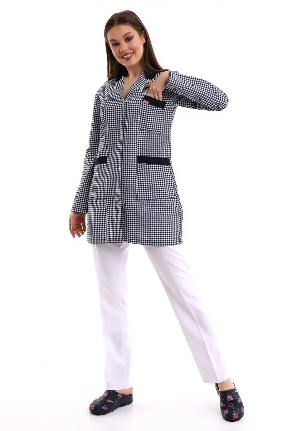 Doktor Öğretmen Kadın Önlük Ara Boy Ceket Yaka - 47 Lacivert