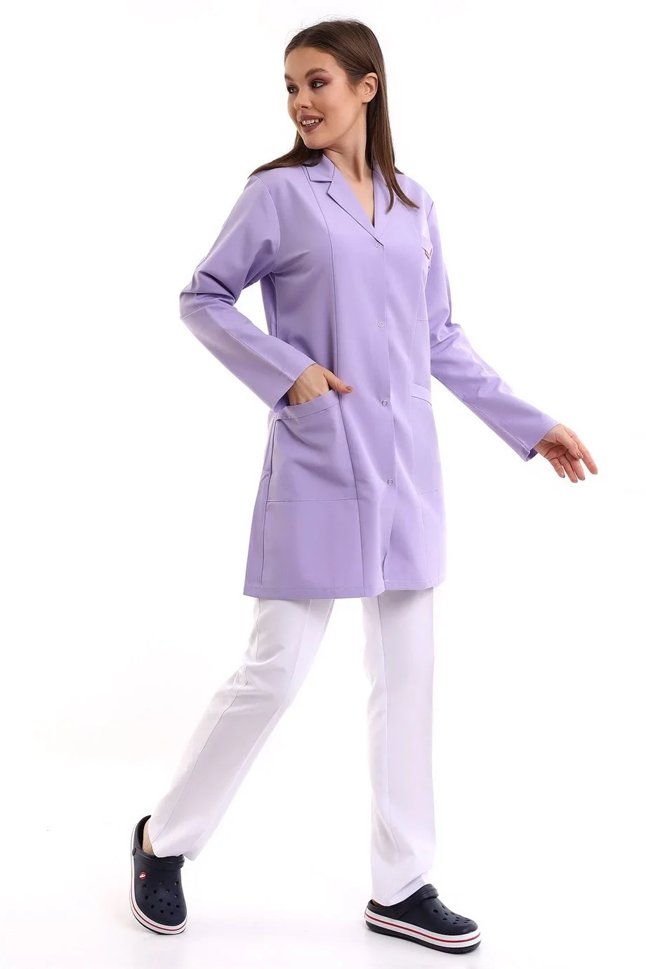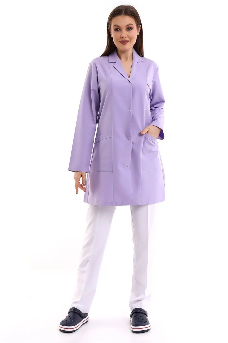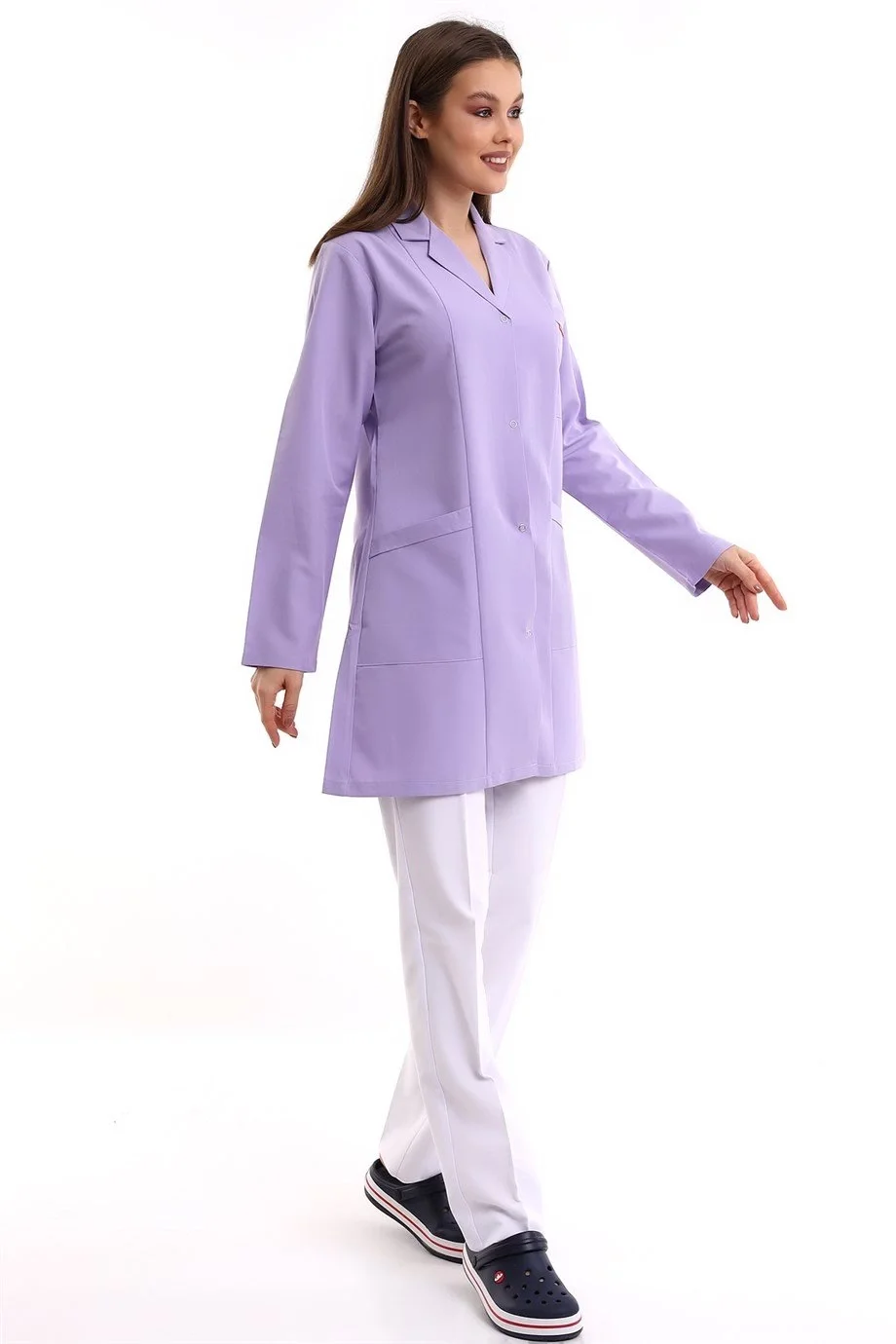 Doktor Öğretmen Kadın Önlük Ara Boy Ceket Yaka - 12 Açık Pembe
