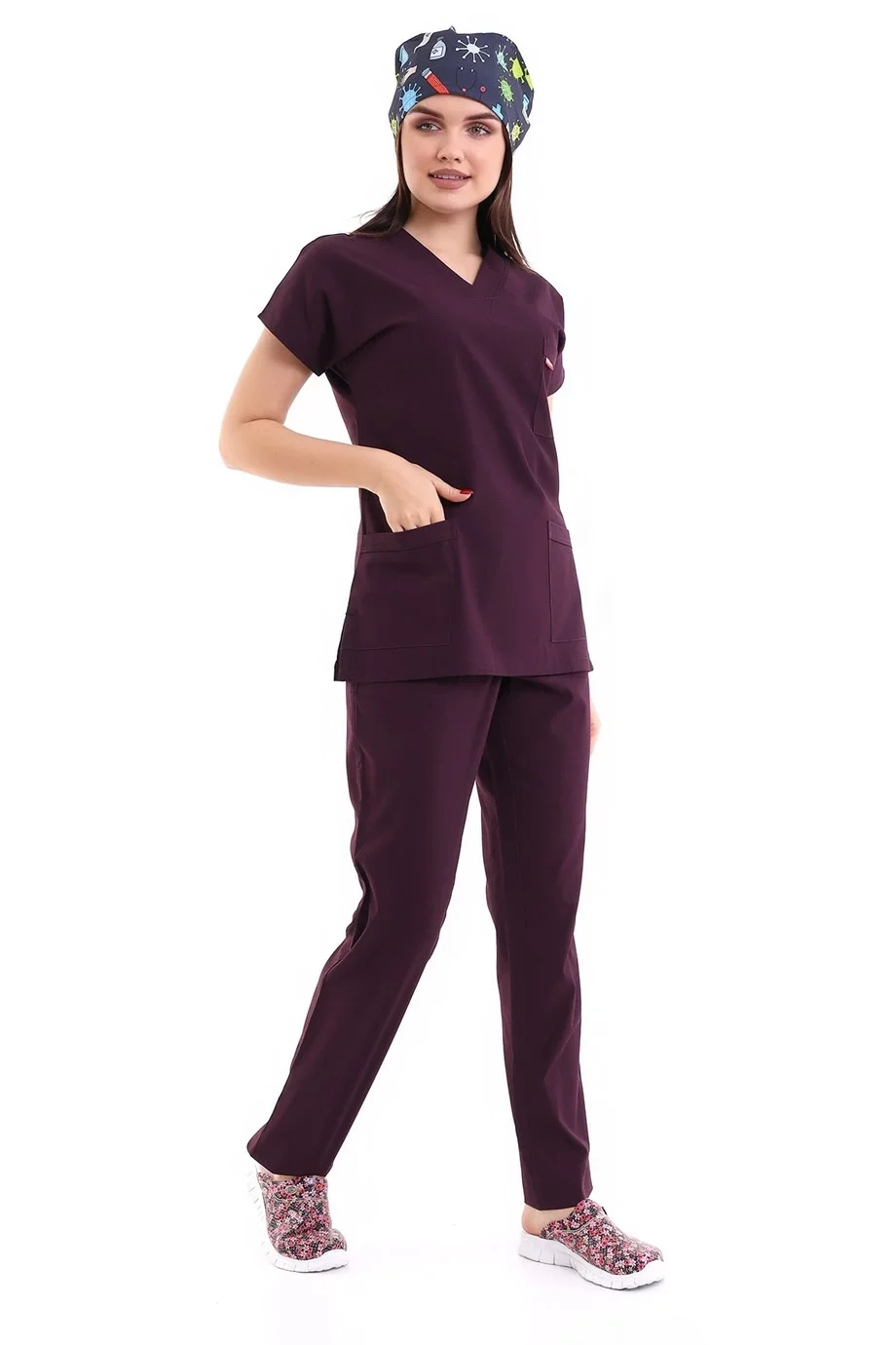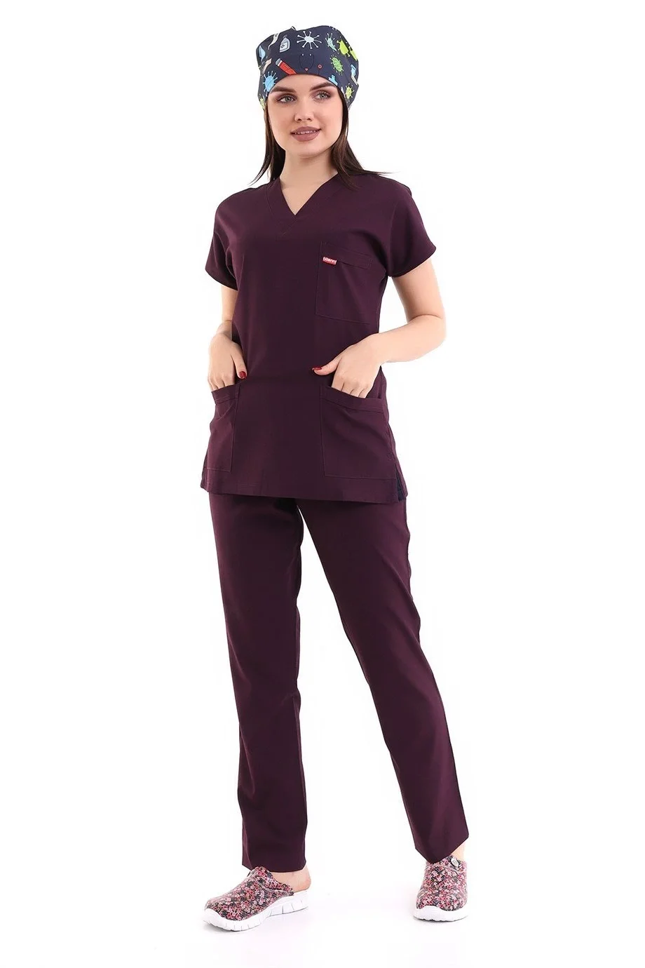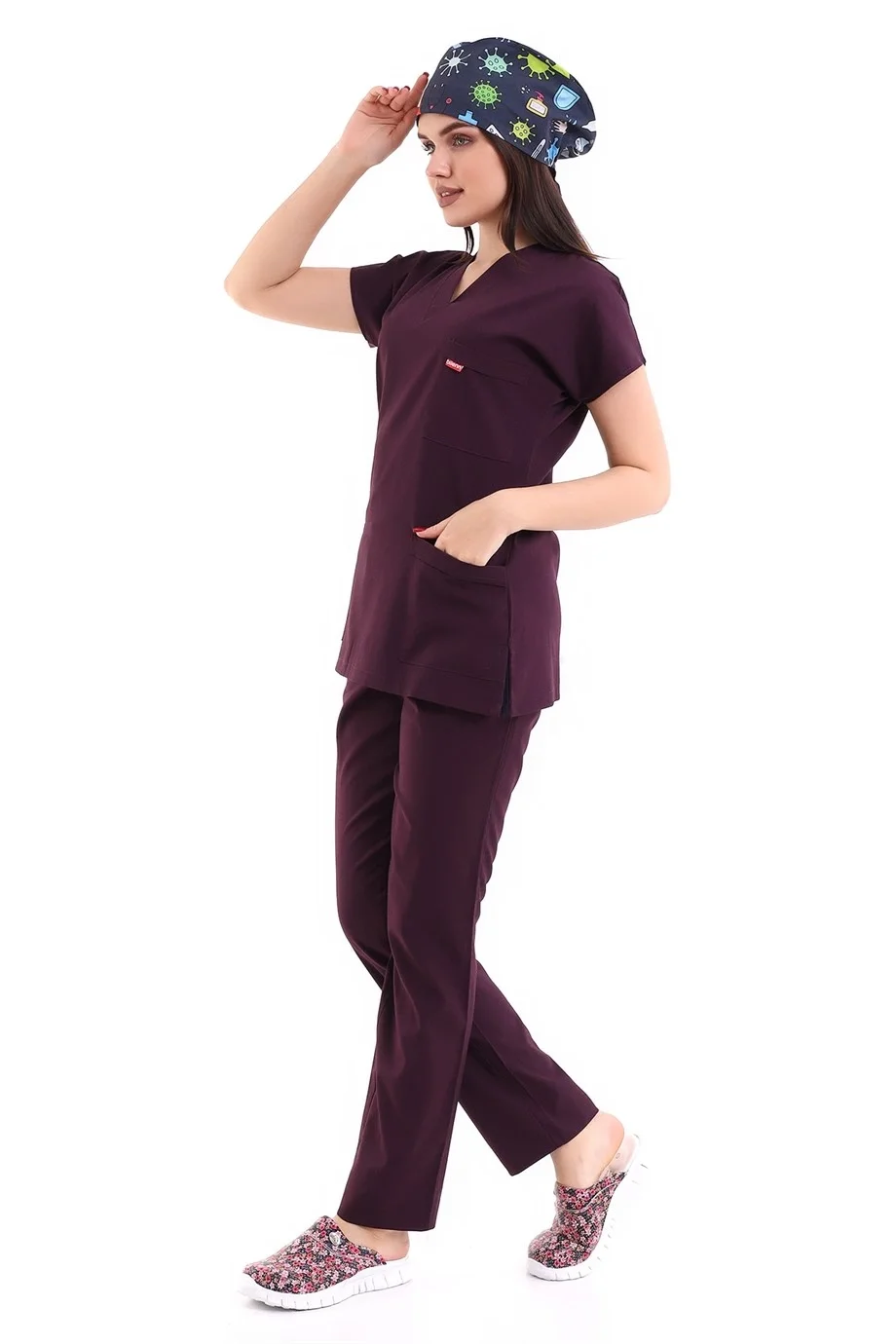 Desenli Tek Üst Scrubs Forma