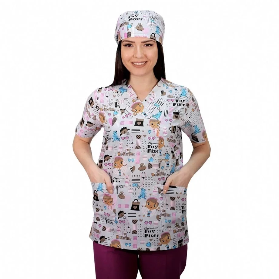 Zarf Yaka Desenli Üst - 4101 Smile Diş