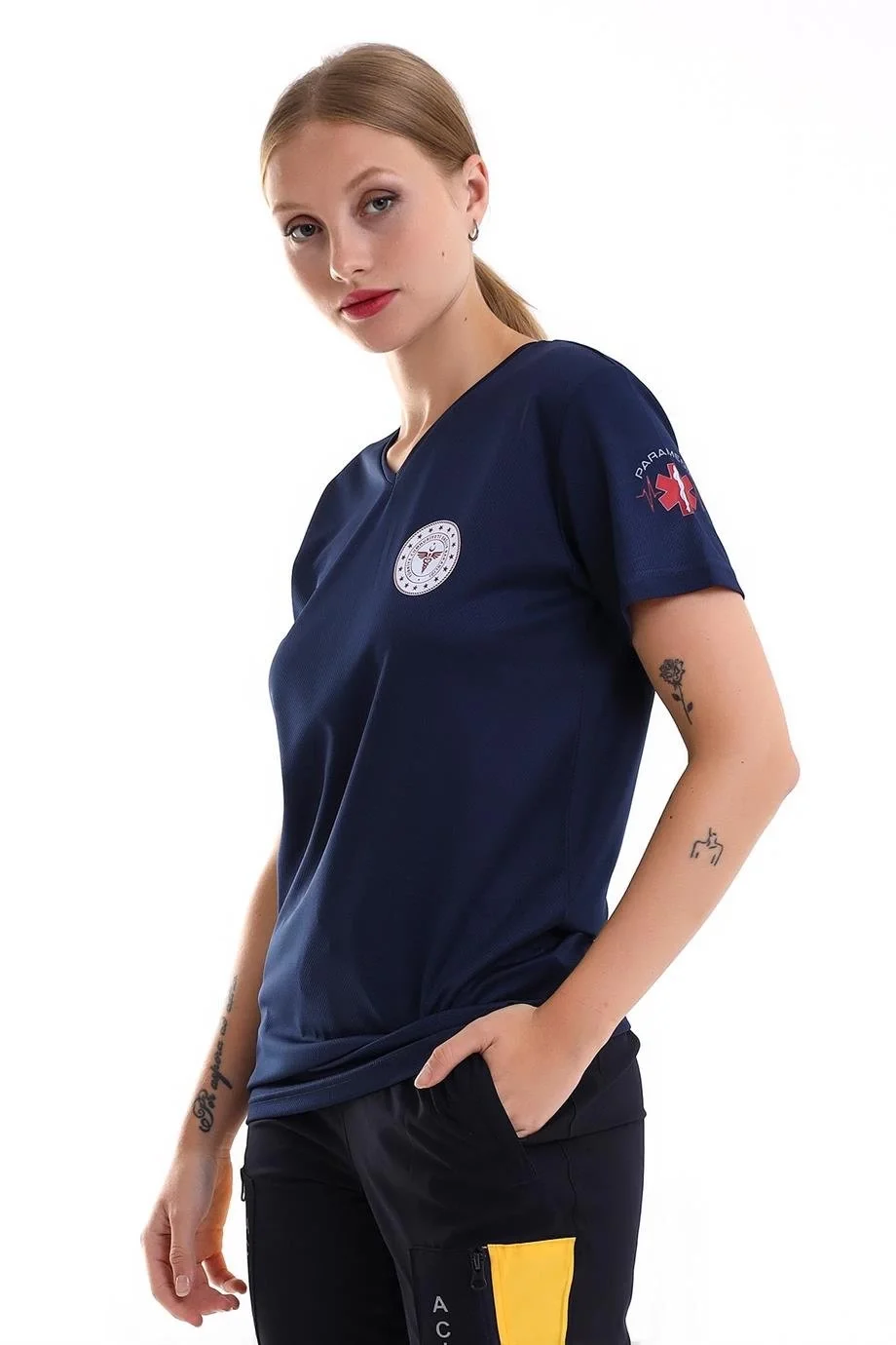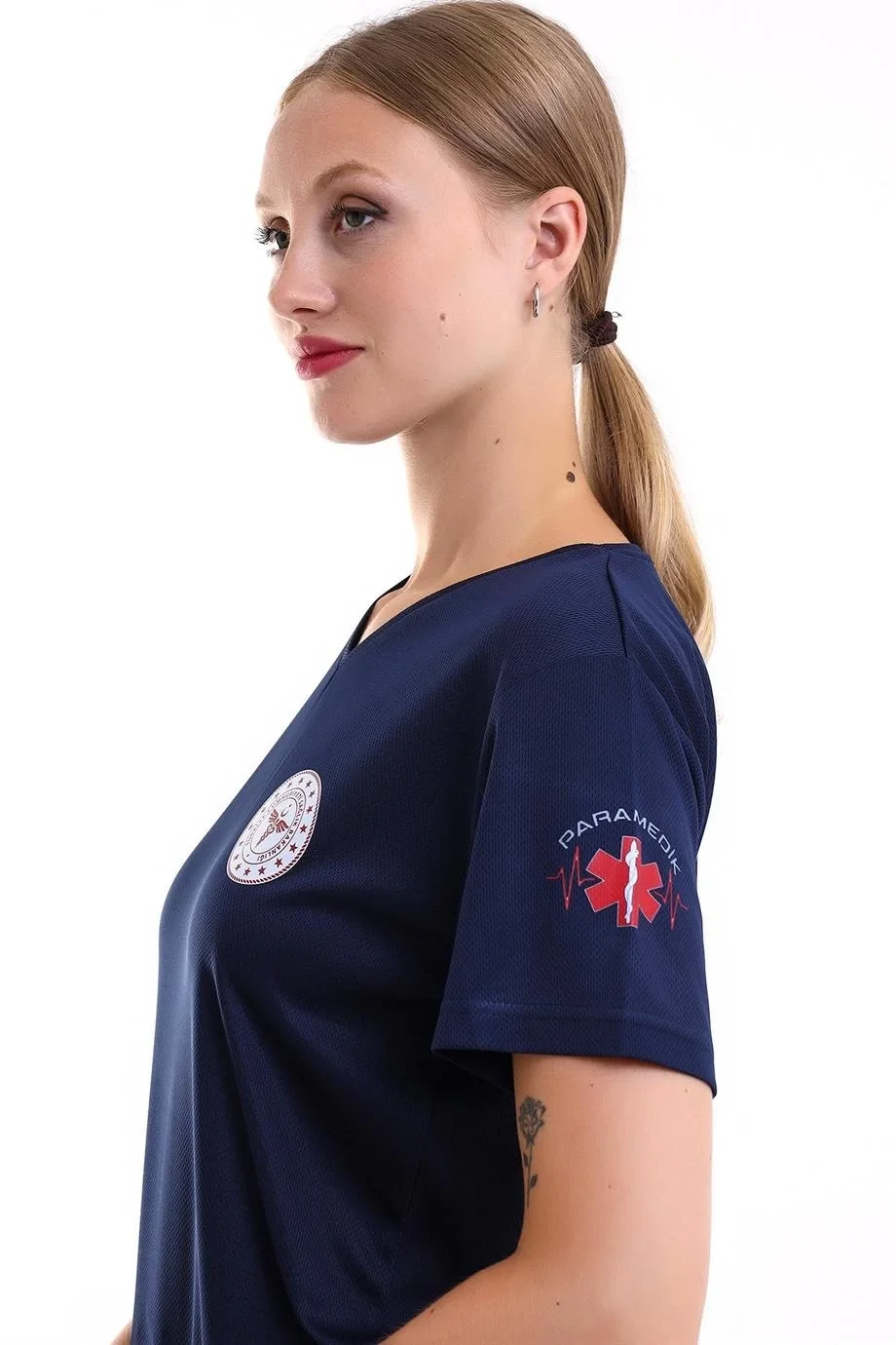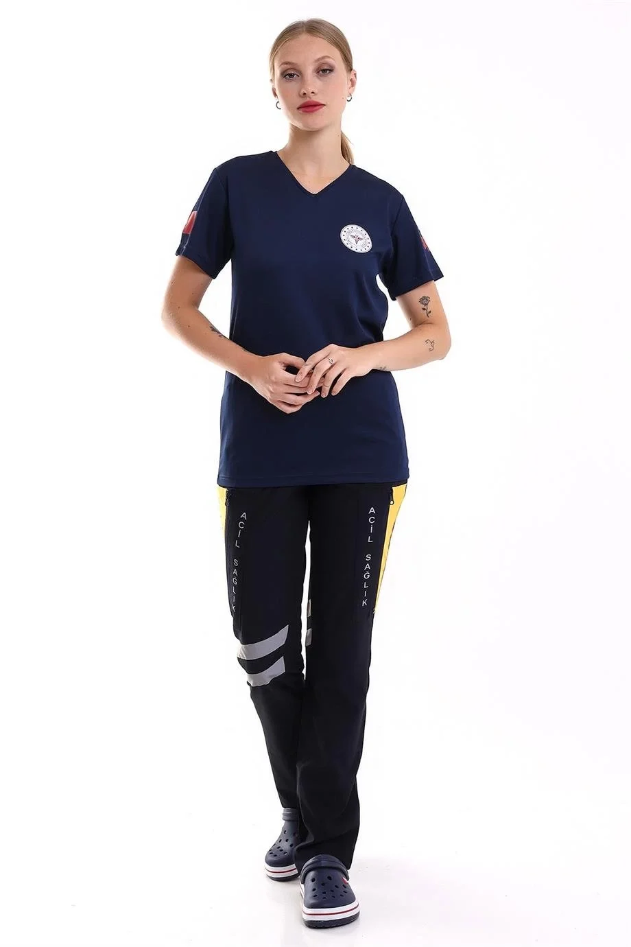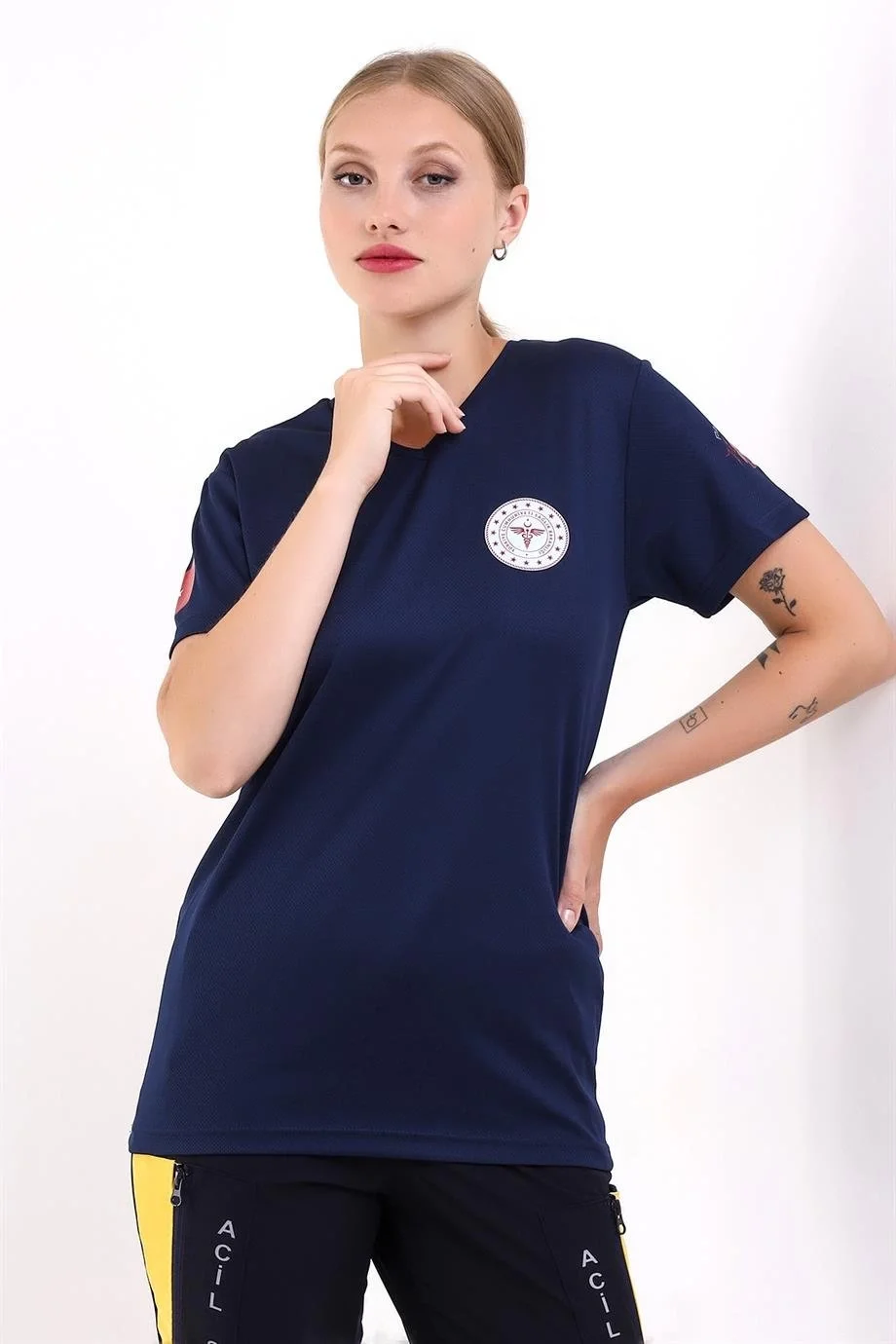 Acil Sağlık Yuvarlak Yaka Penye Tunik Baskılı - Lacivert