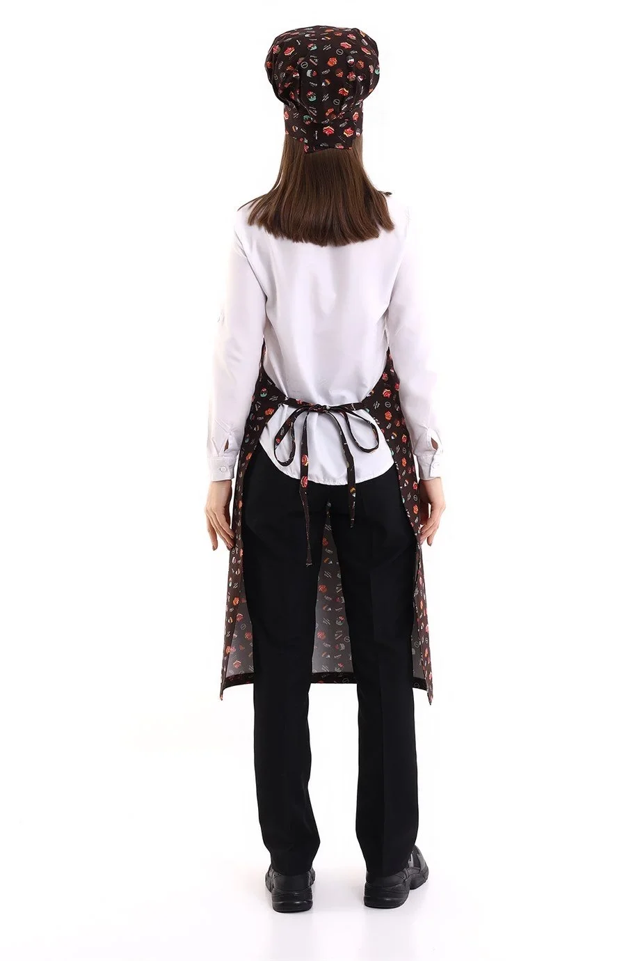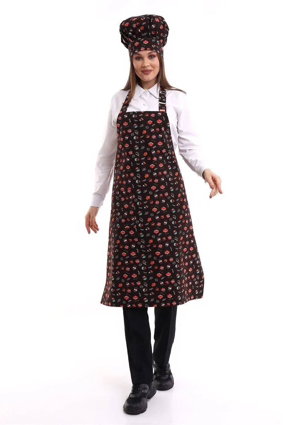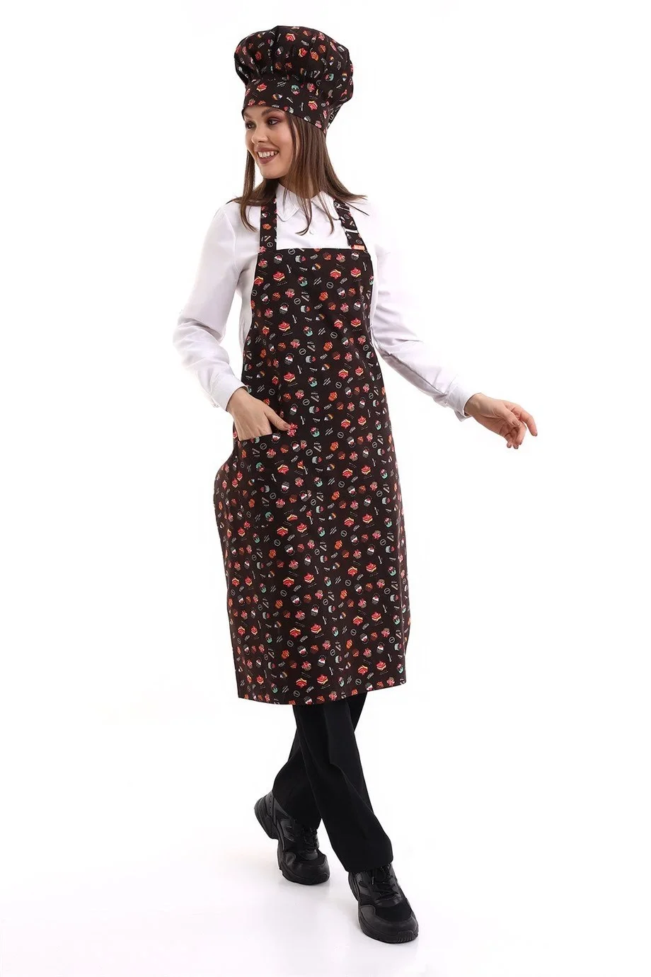 Desenli Askılı Önlük - 3803 Siyah Fincan