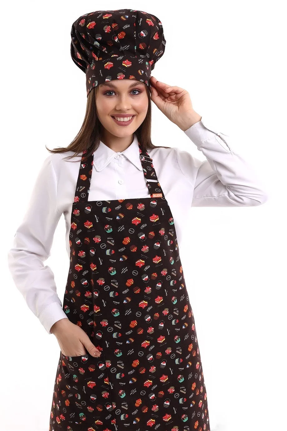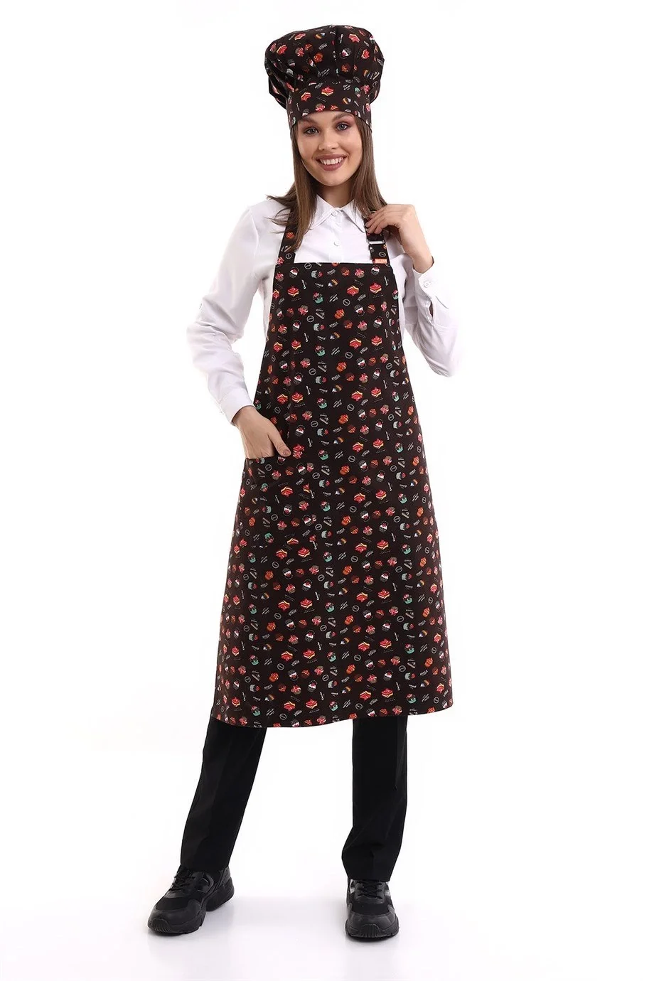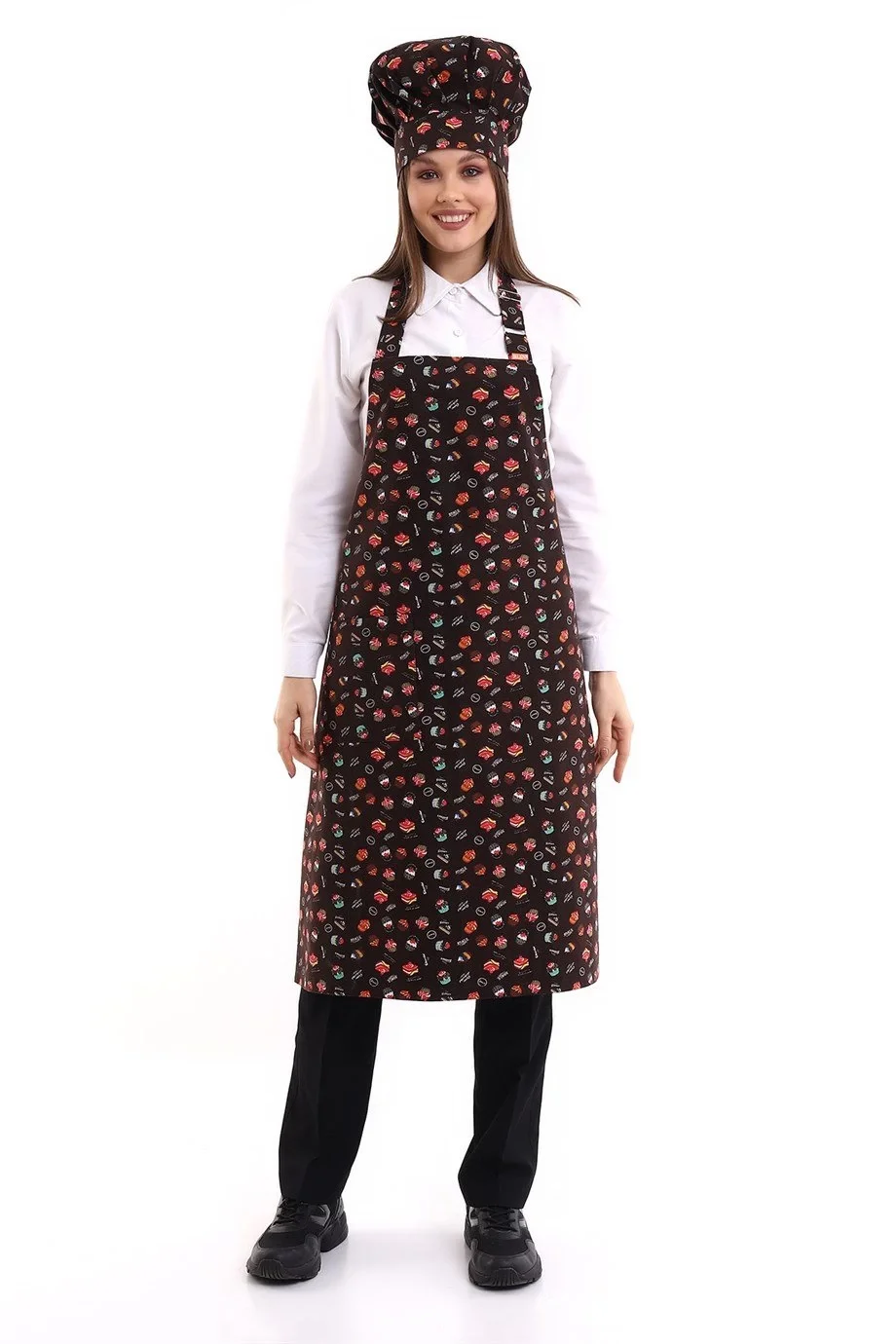 Desenli Askılı Önlük - 3803 Siyah Fincan