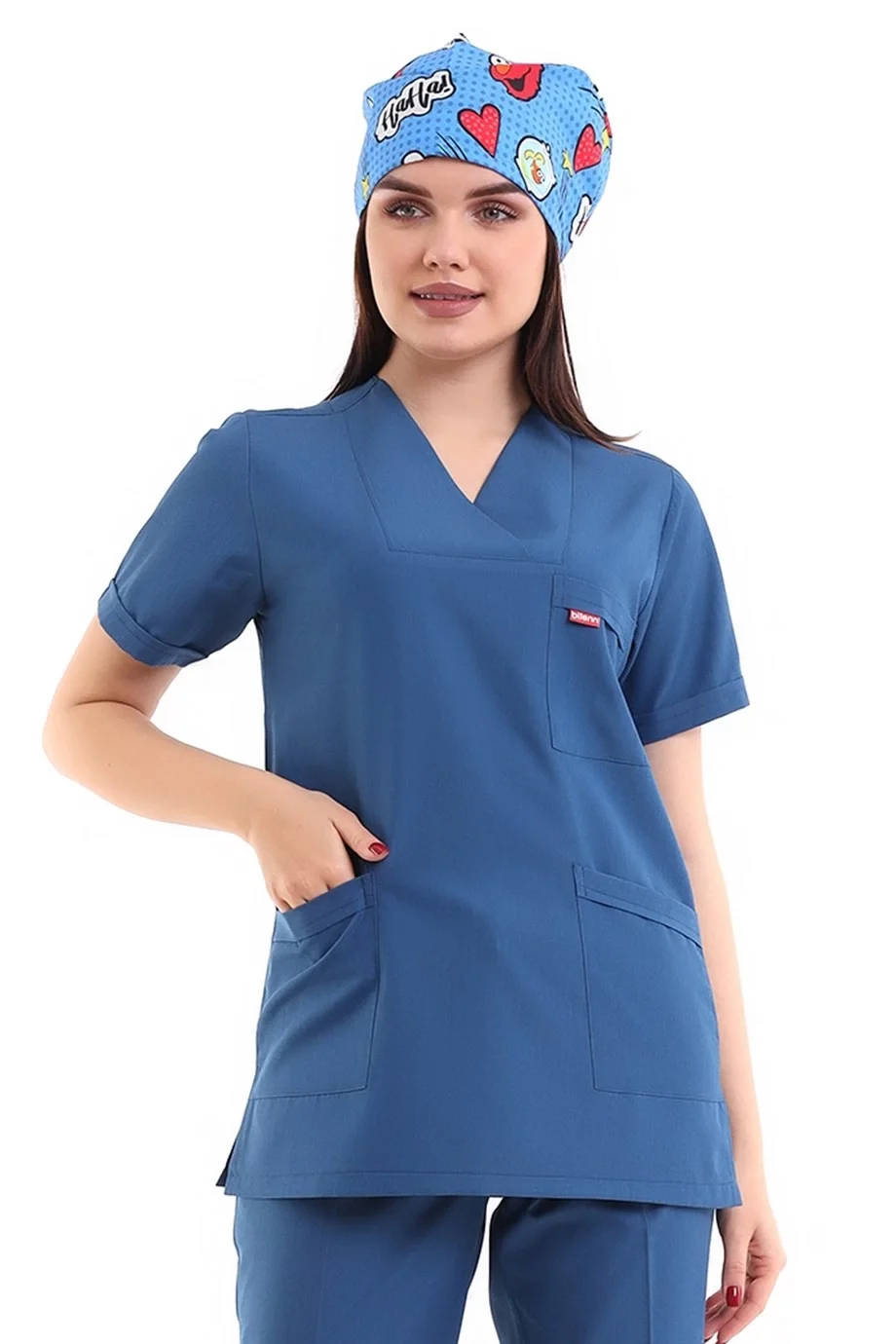 Desenli Tek Üst Scrubs Forma