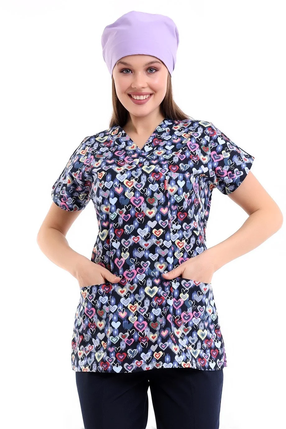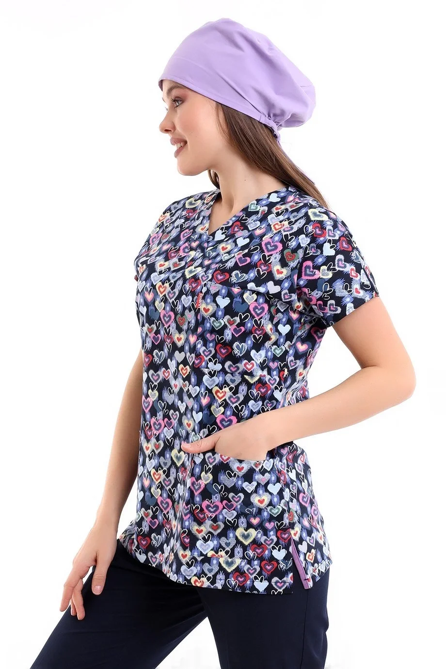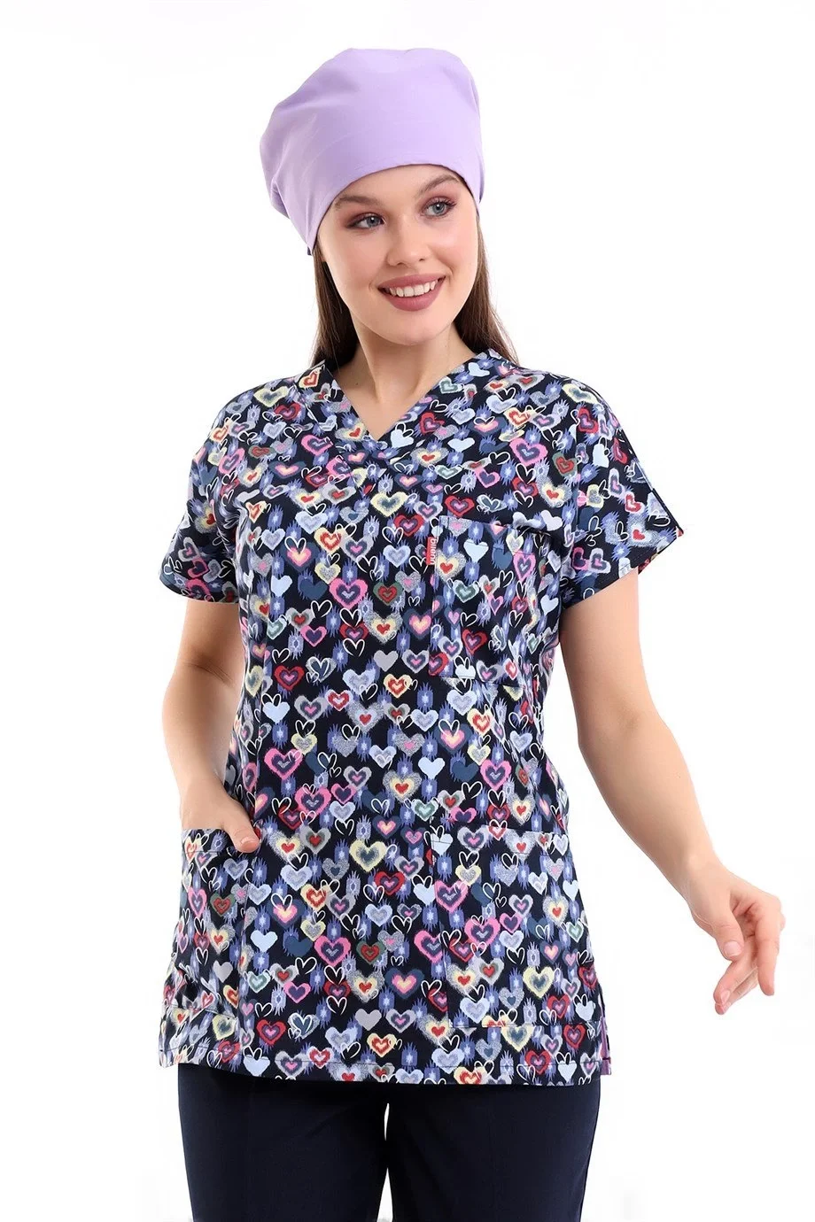 Yarasa Kol Dijital Unisex Desenli Üst - 6525 Lacivert Stetoskop