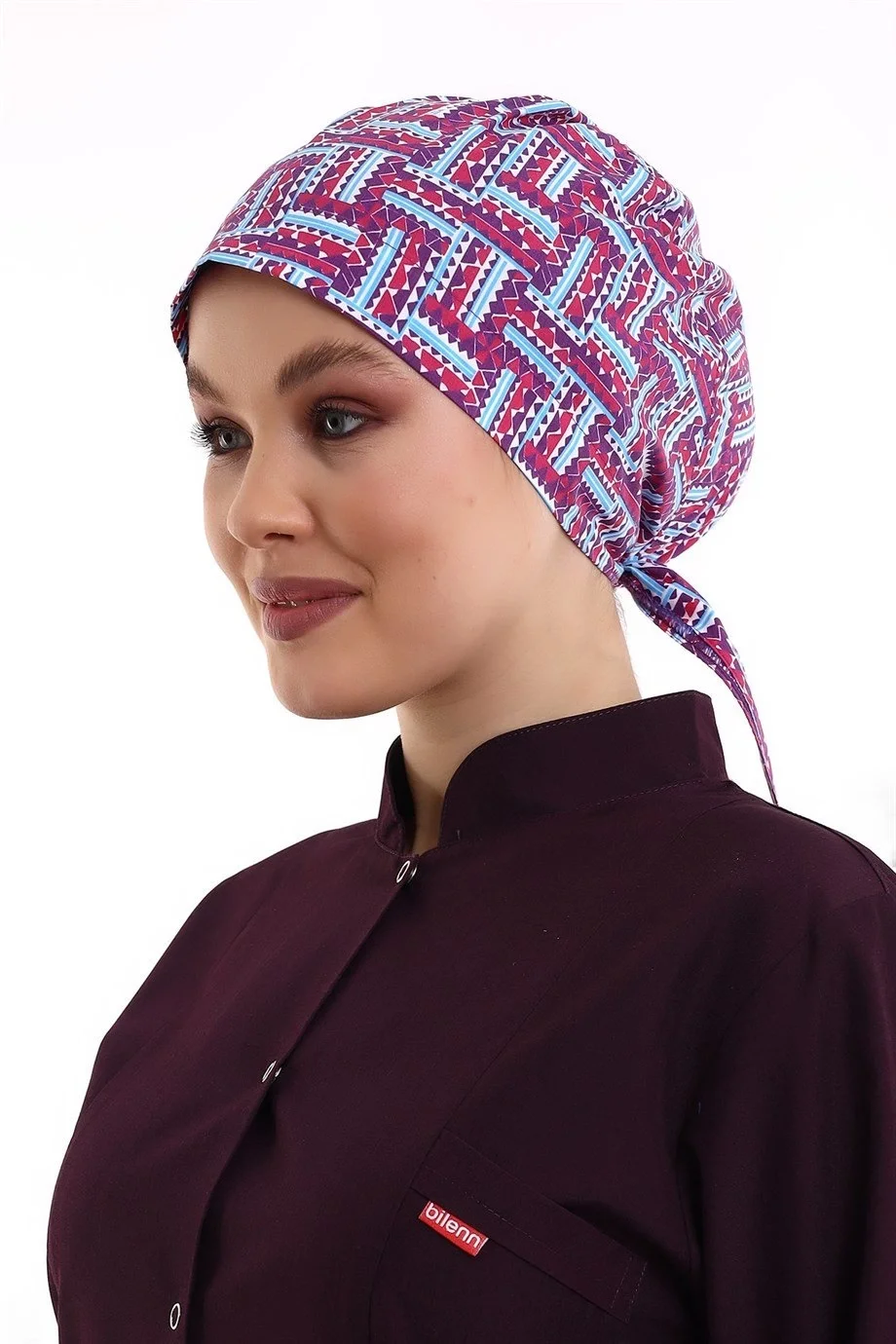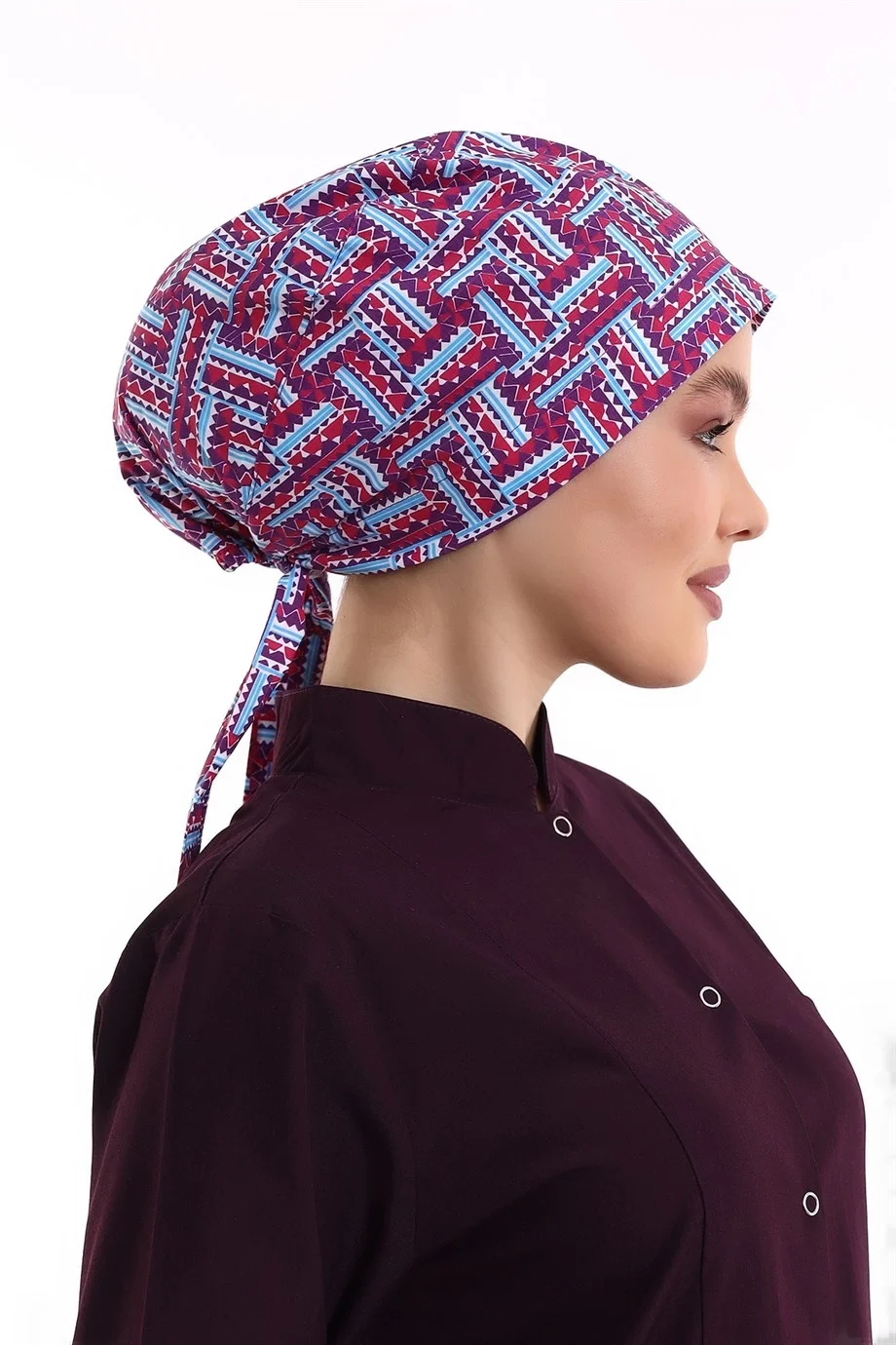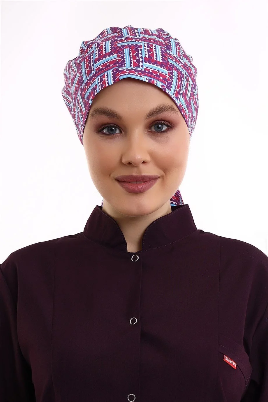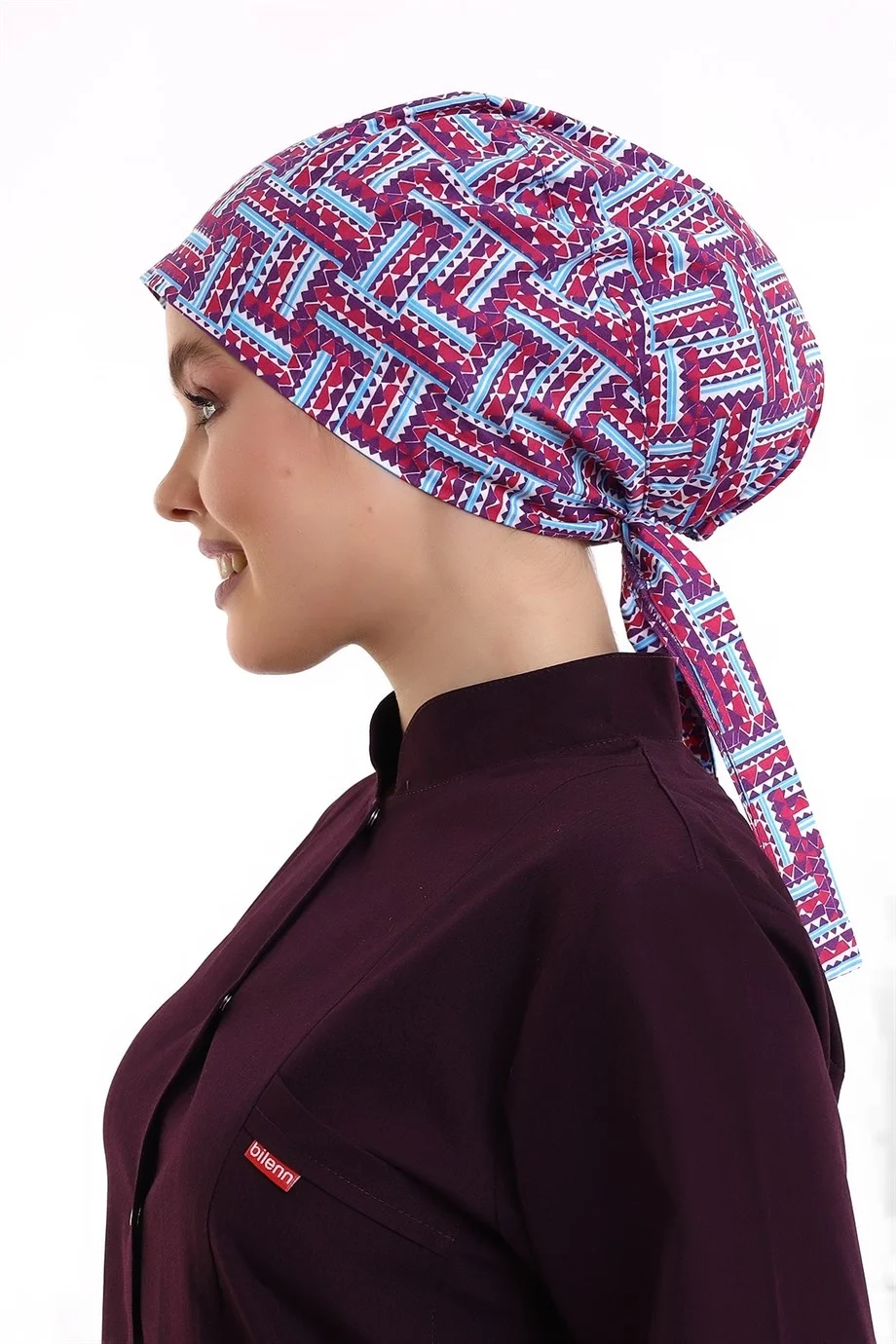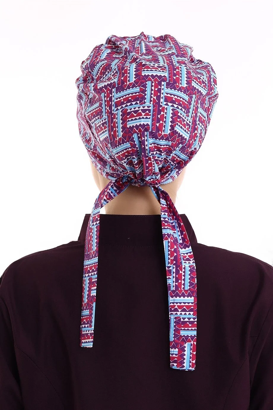 Tesettür Bone - 2301 Mavi Kilim Desenli