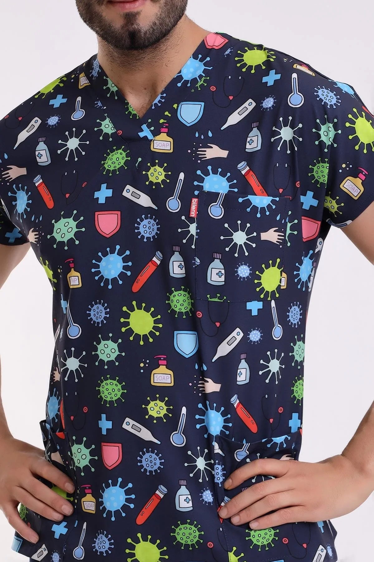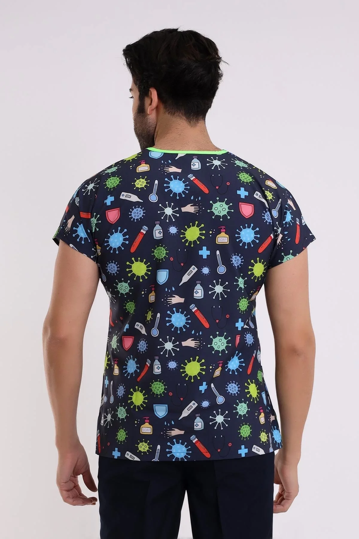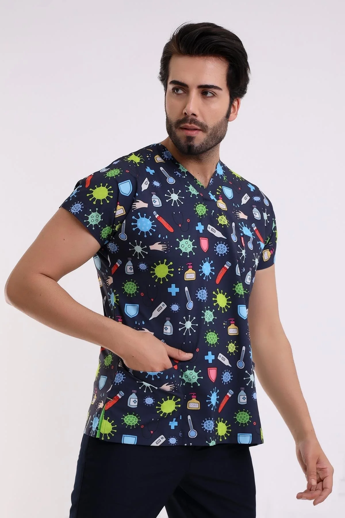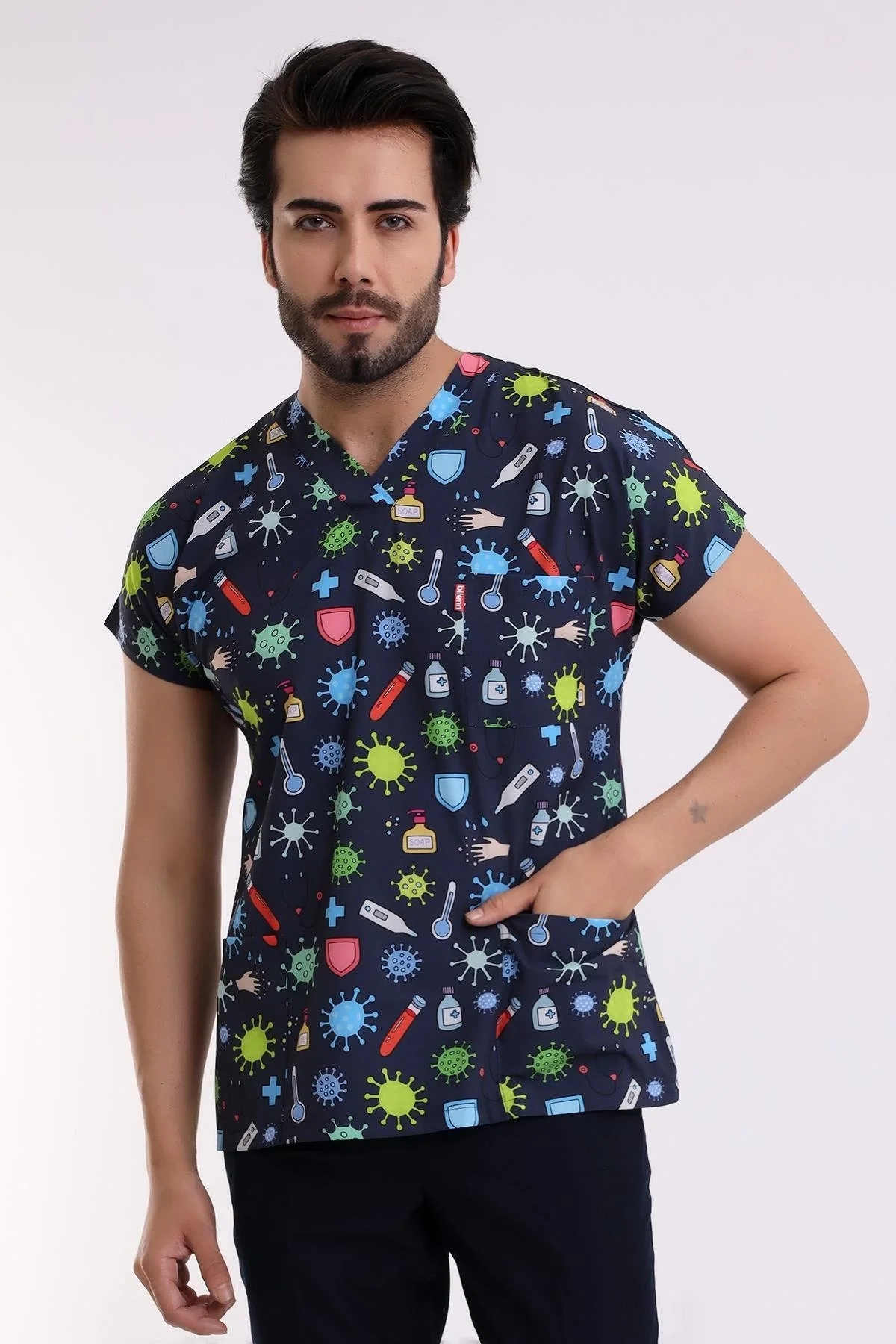 Yarasa Kol Dijital Unisex Desenli Üst - 6525 Lacivert Stetoskop