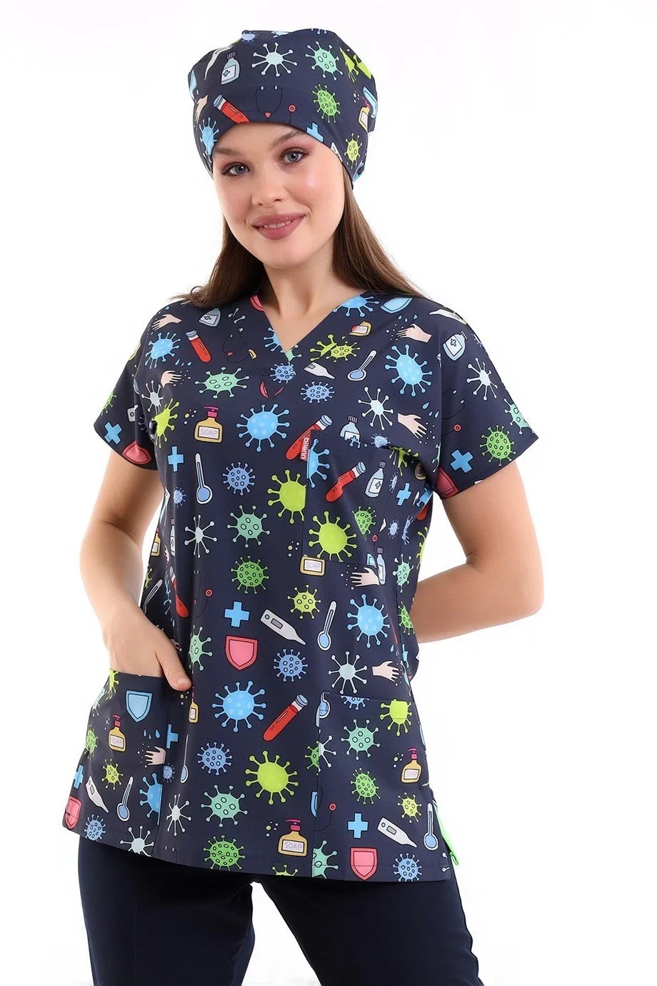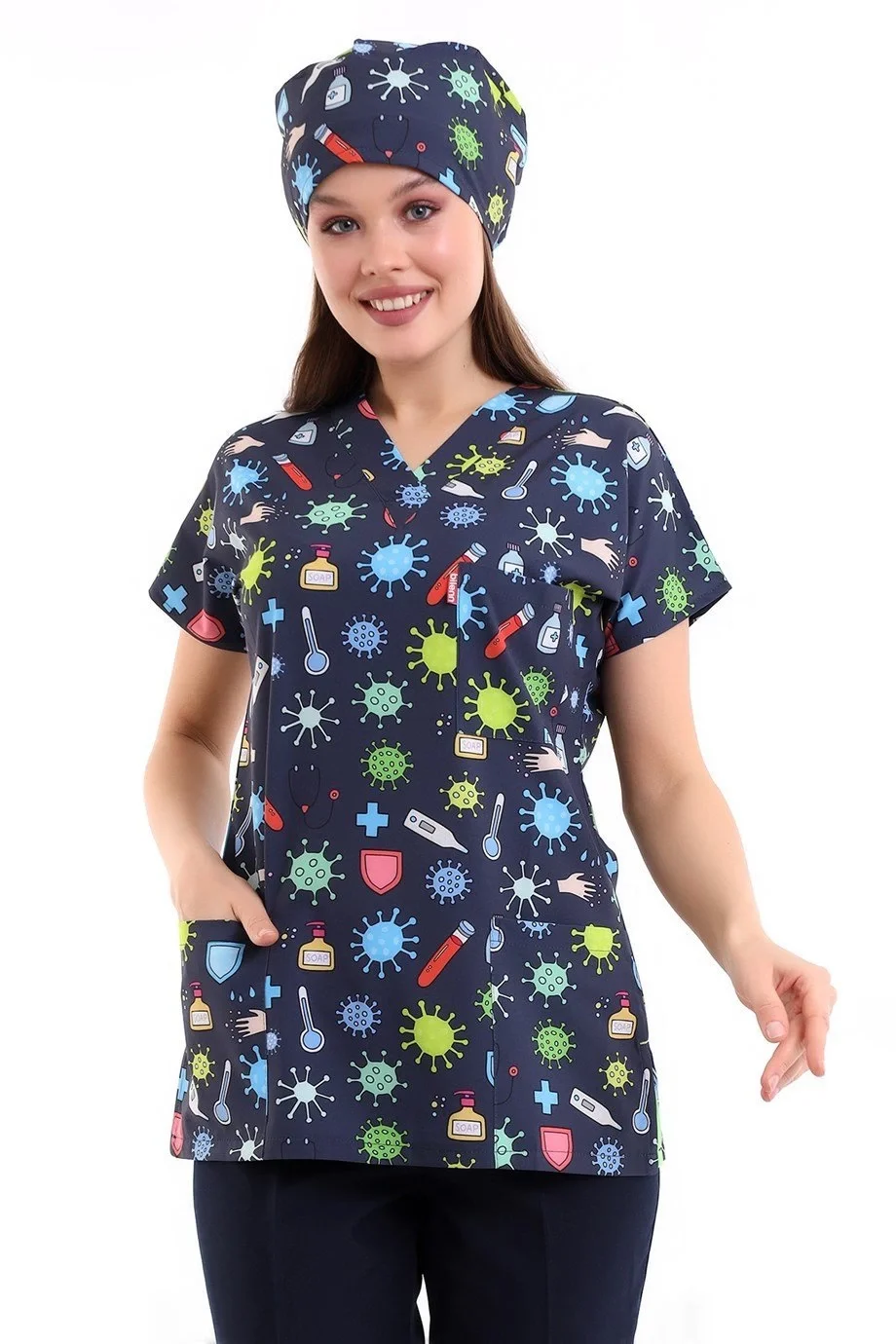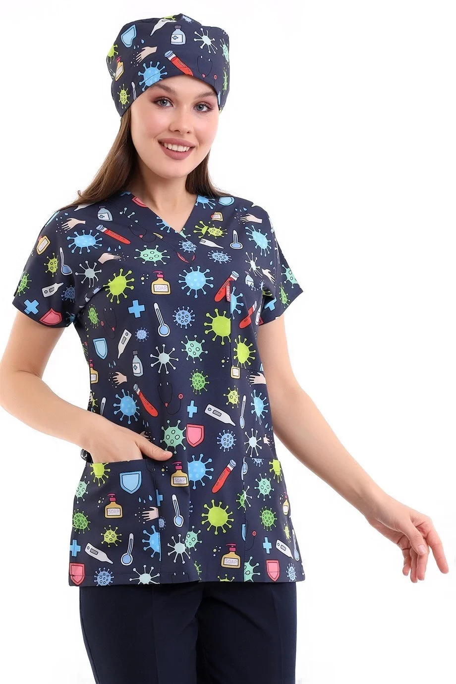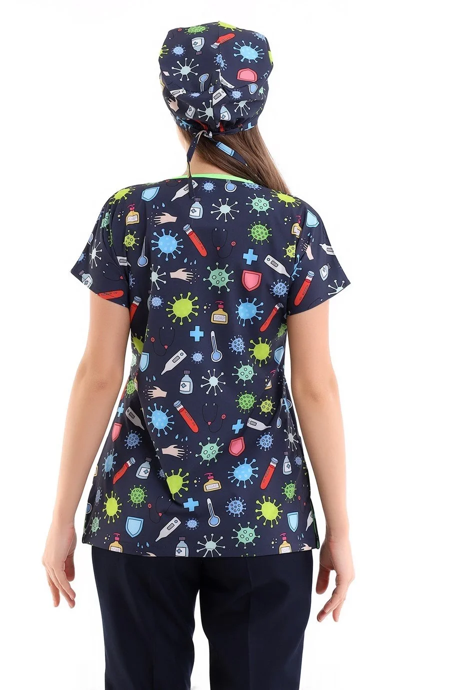 Yarasa Kol Dijital Unisex Desenli Üst - 6525 Lacivert Stetoskop
