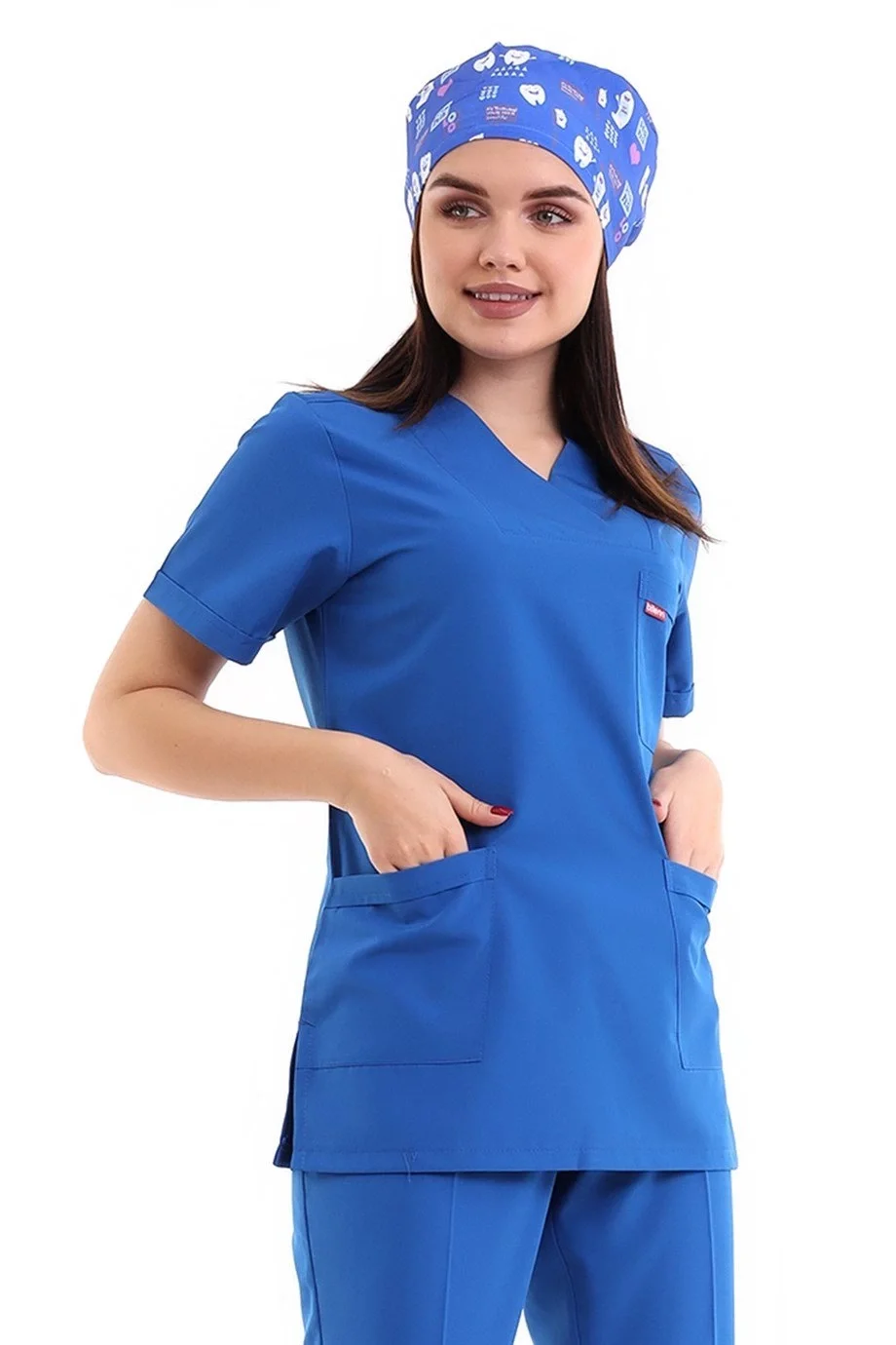 Desenli Tek Üst Scrubs Forma