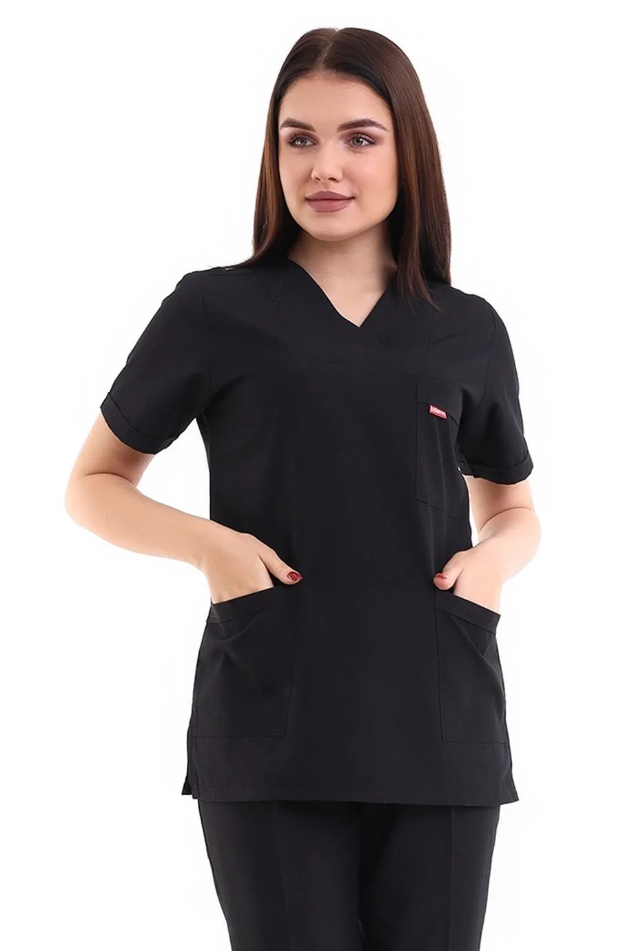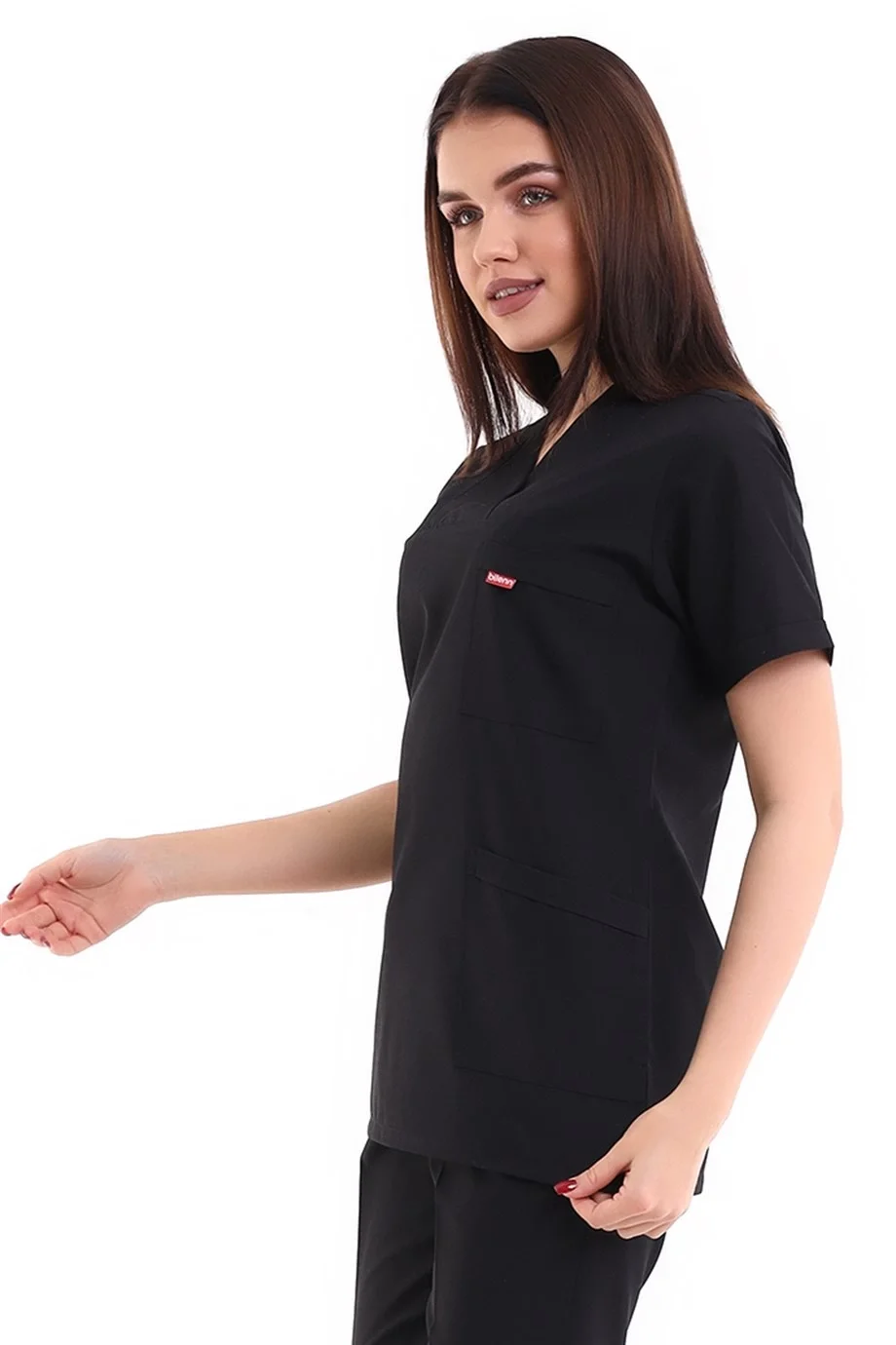 Beşgen Yaka Kadın Tek Üst - 48 Siyah