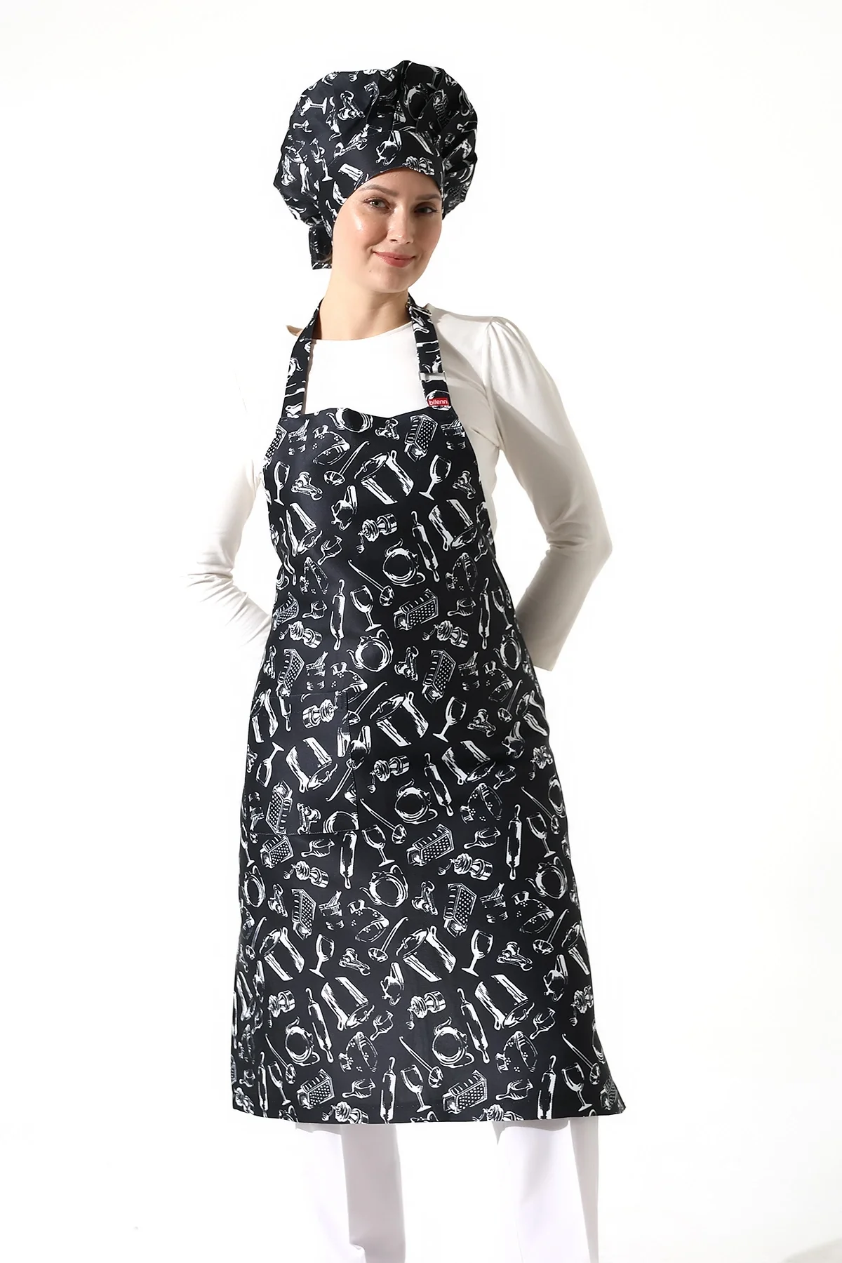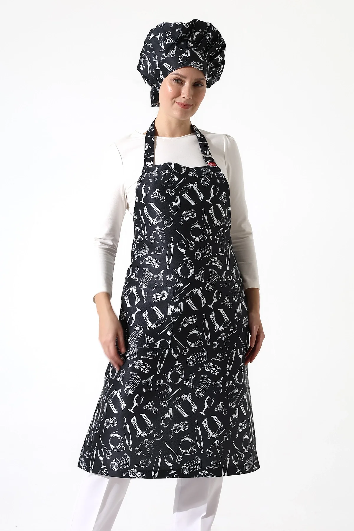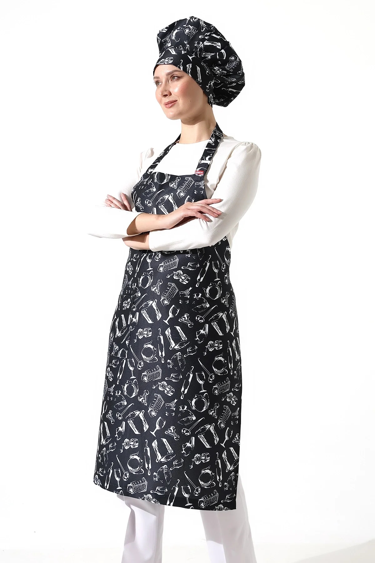 Desenli Askılı Önlük - 3802 Kılçık Siyah