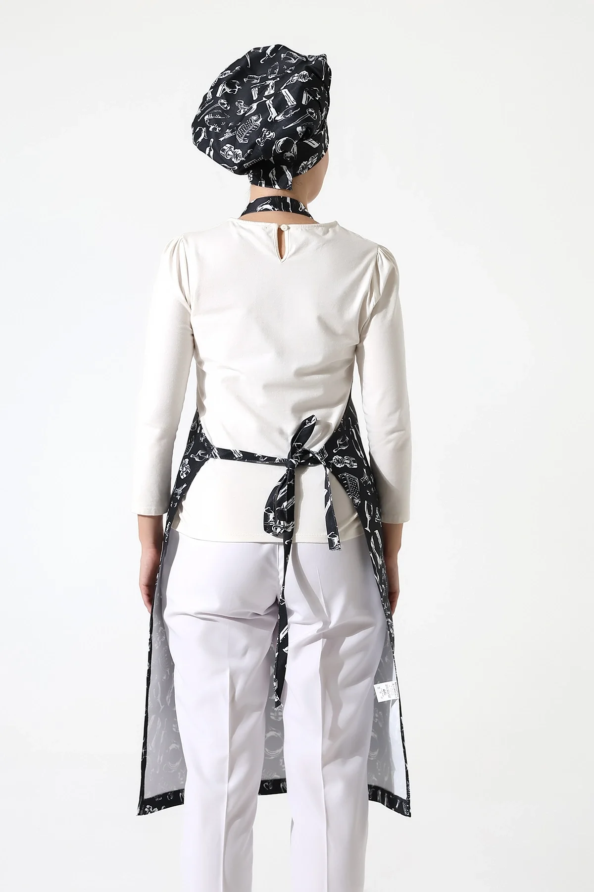 Askılı Önlük Desen Garnili Siyah Kuru Kafa