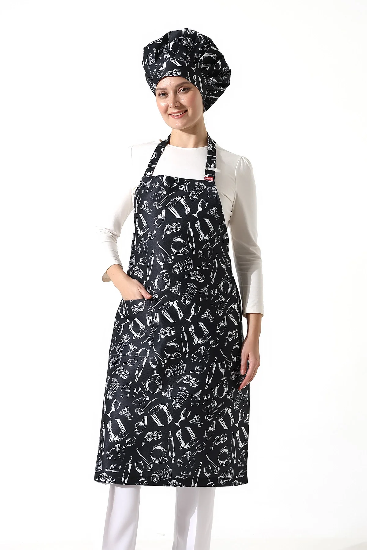 Desenli Askılı Önlük - 3803 Siyah Fincan
