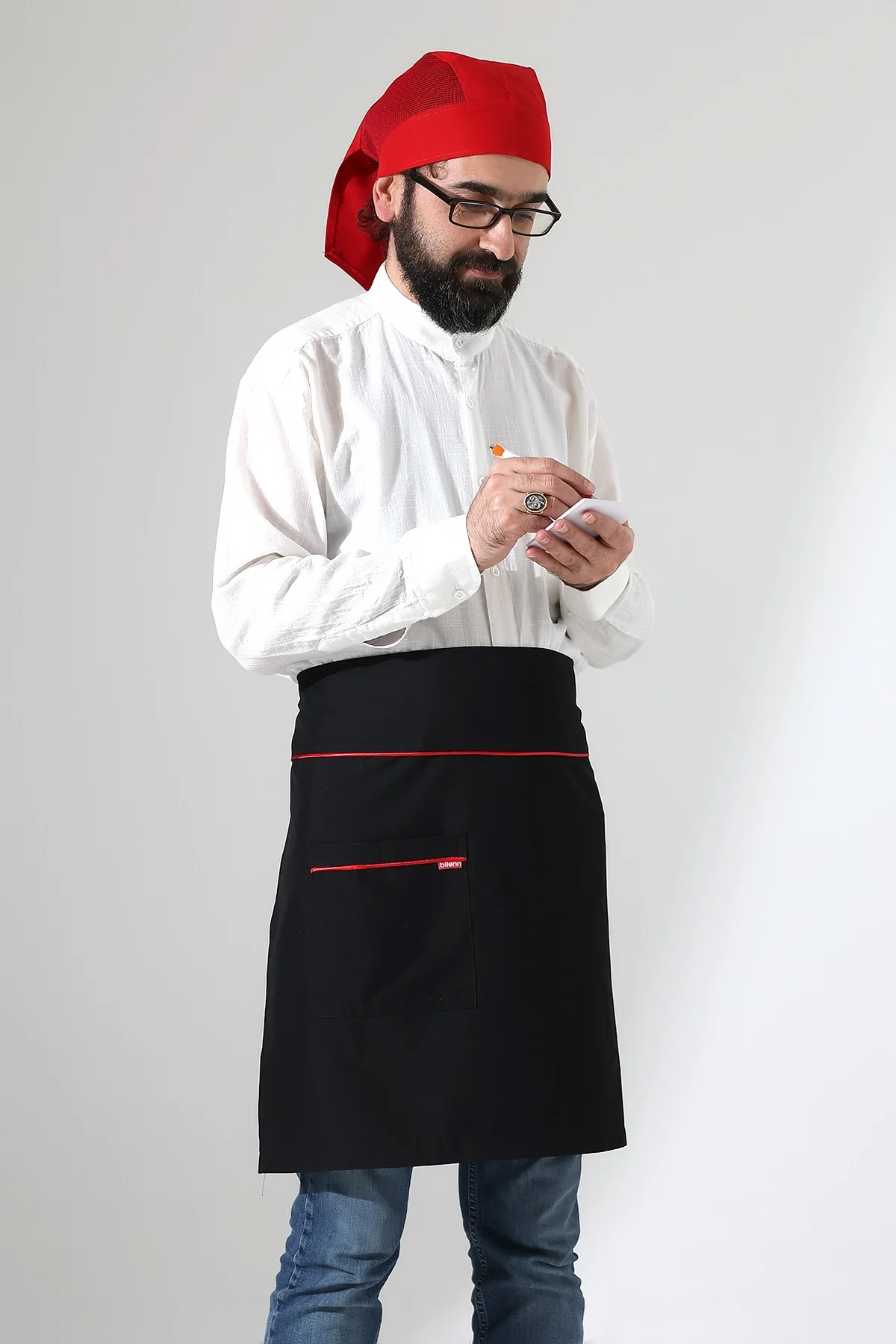 Bel Önlük - Siyah Kırmızı Biyeli