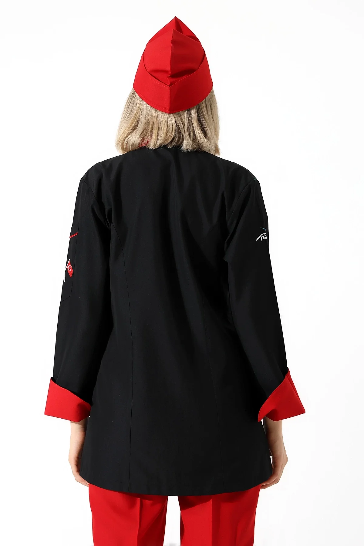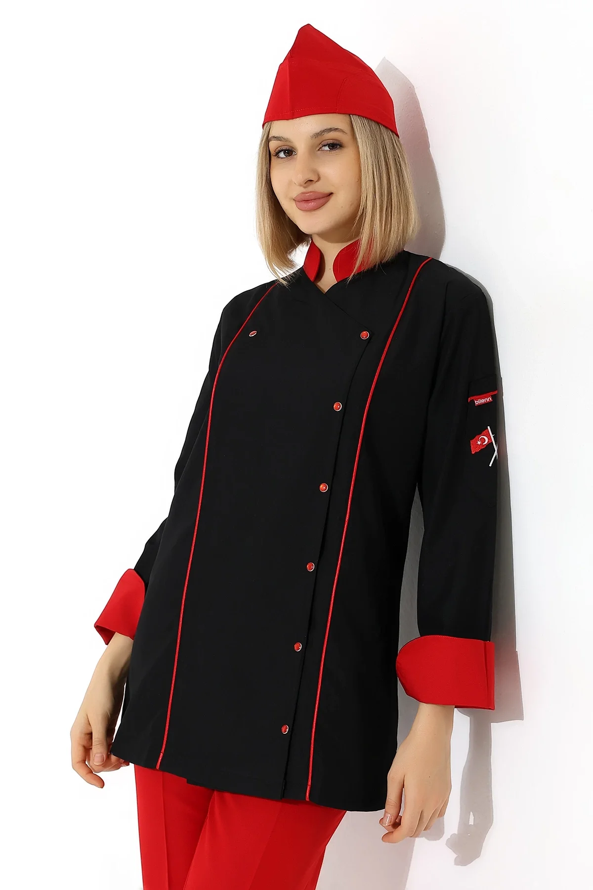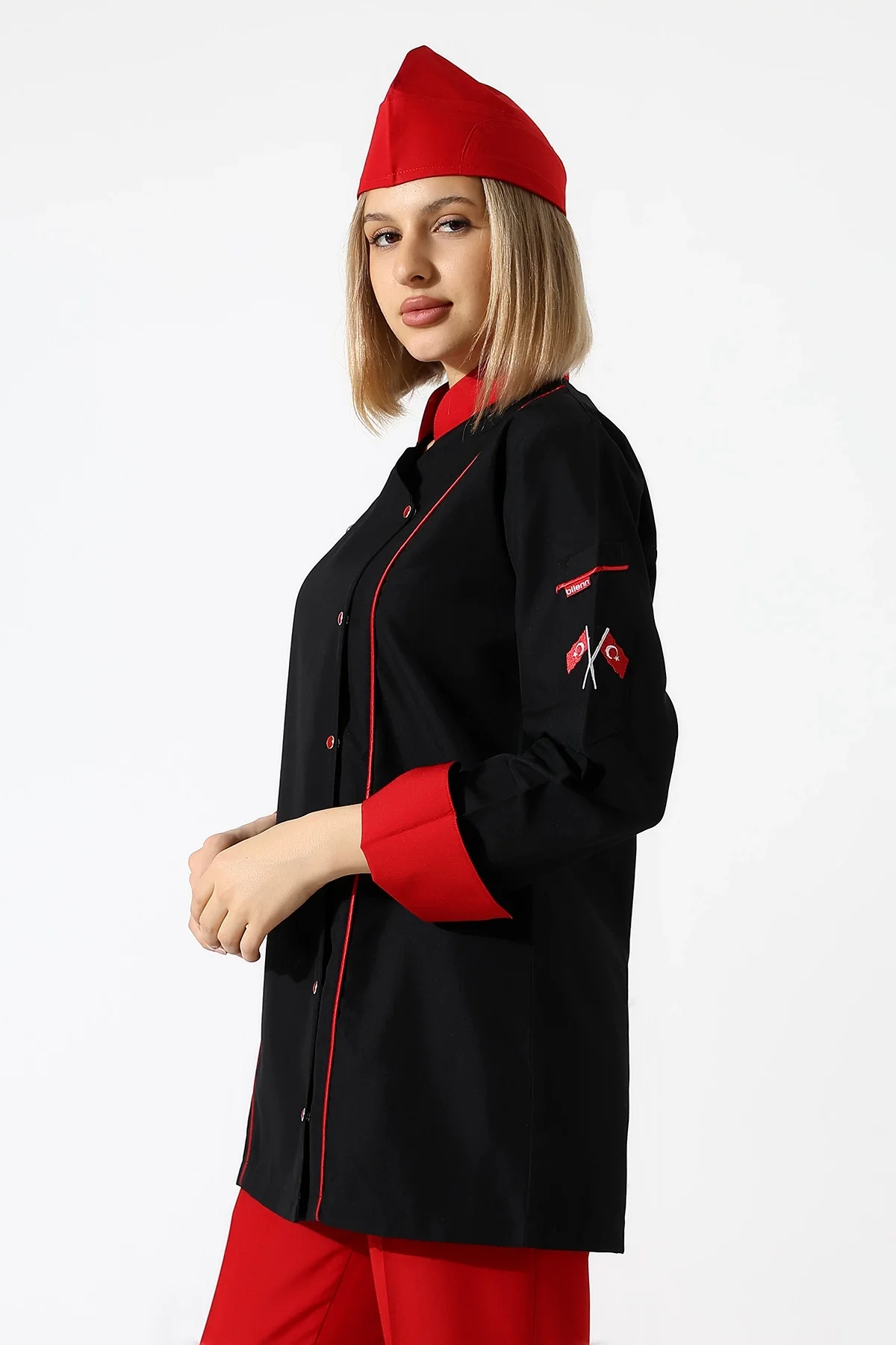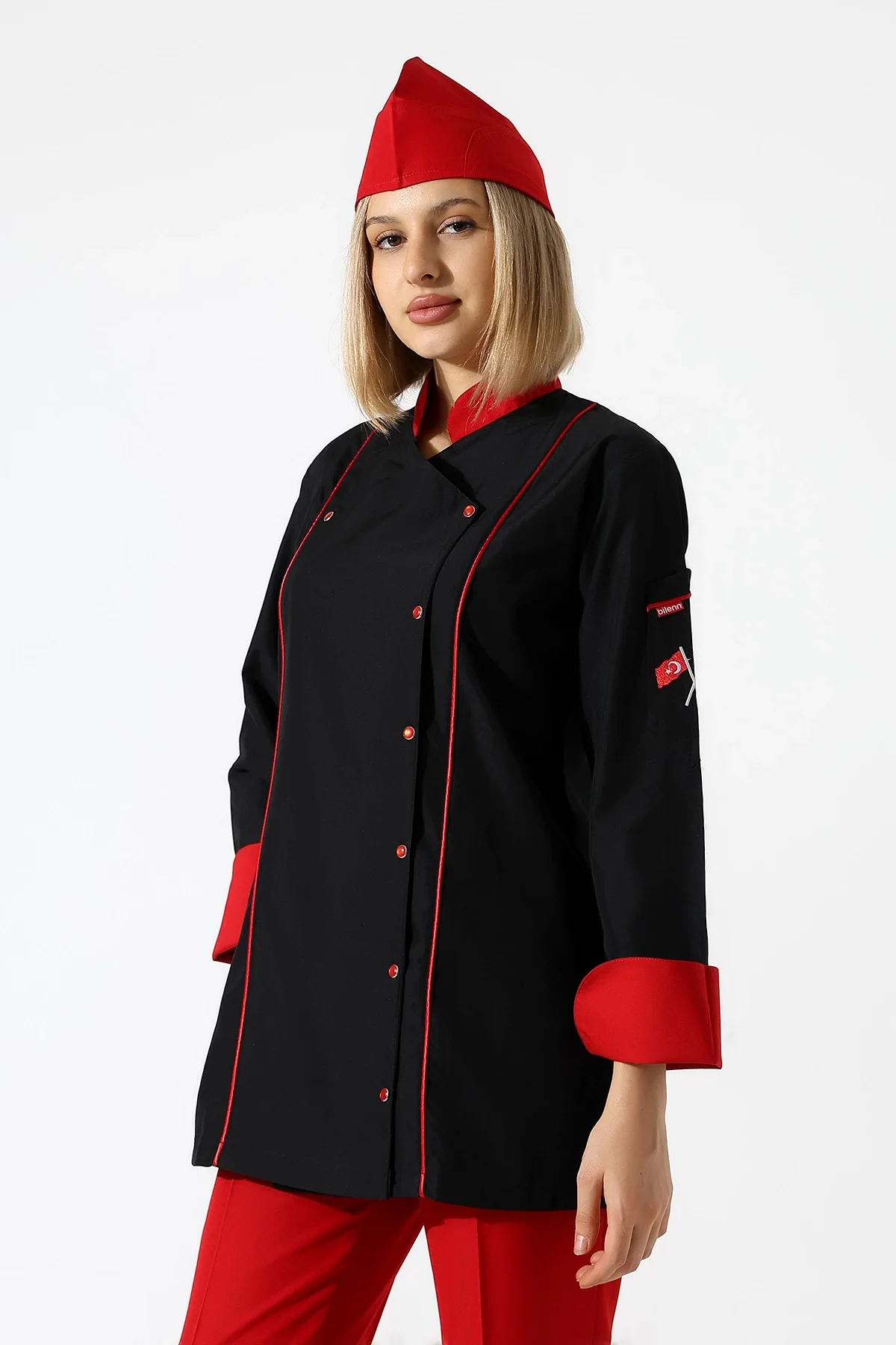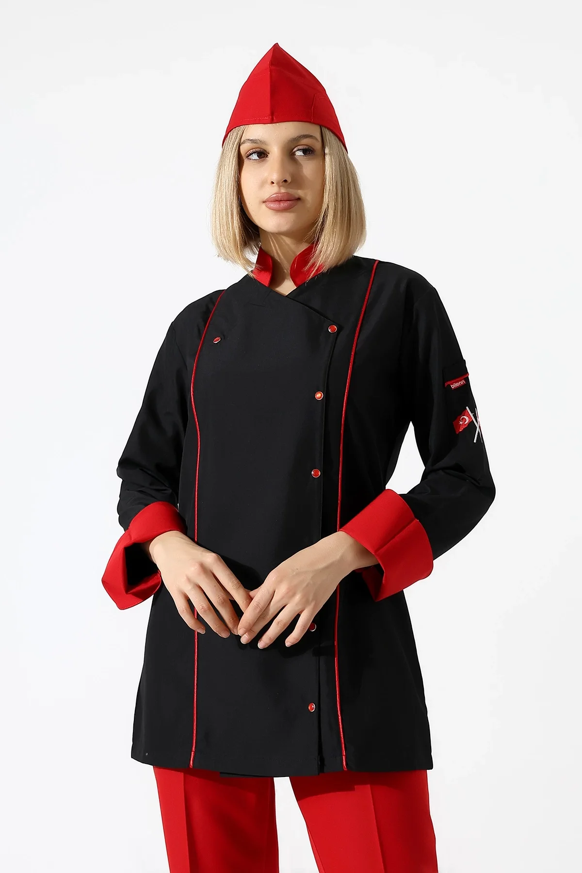 Kadın Aşçı Ceket 01 - Beyaz-Kırmızı Biye