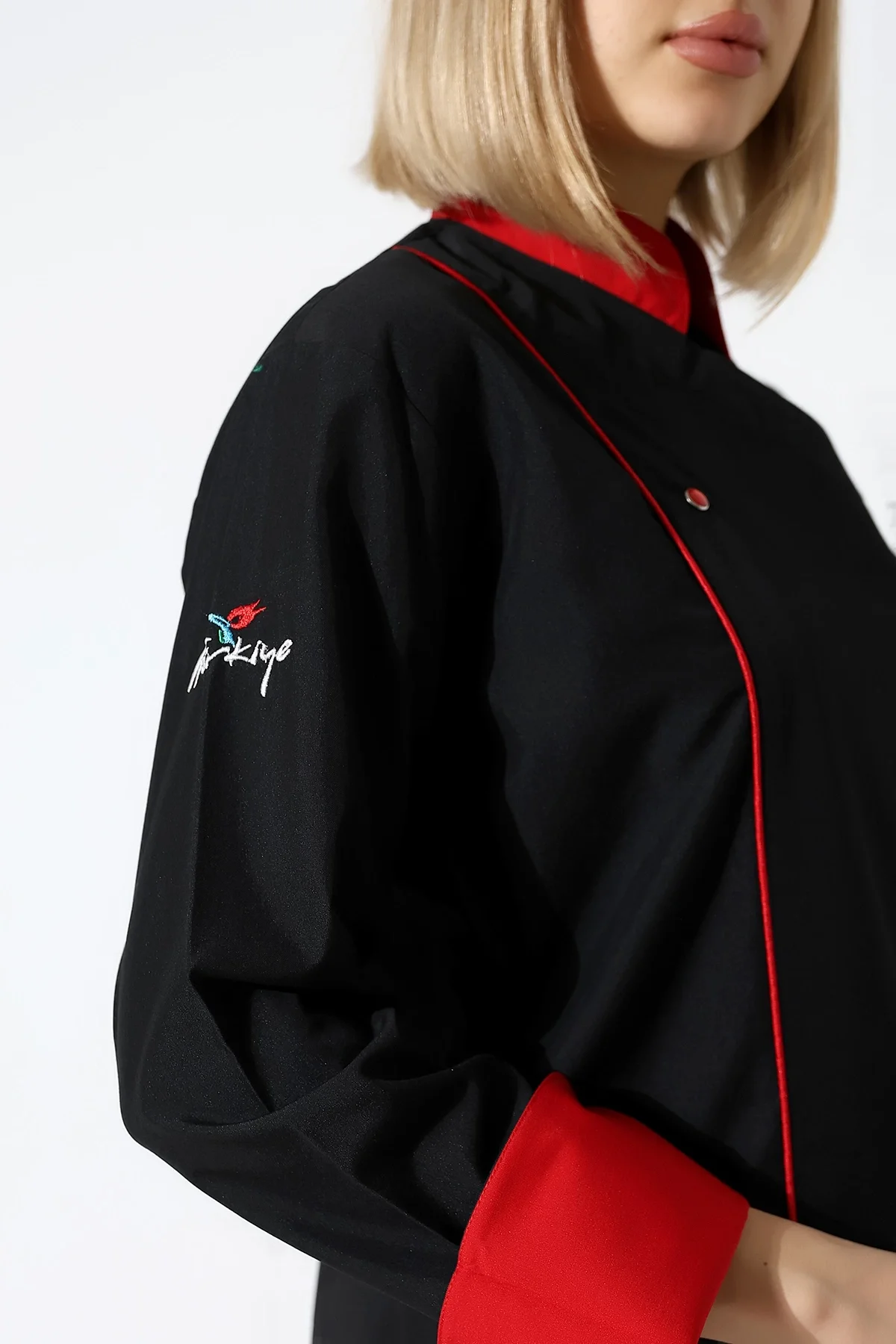 Kadın Aşçı Ceket 01 - Siyah-Sarı Biye
