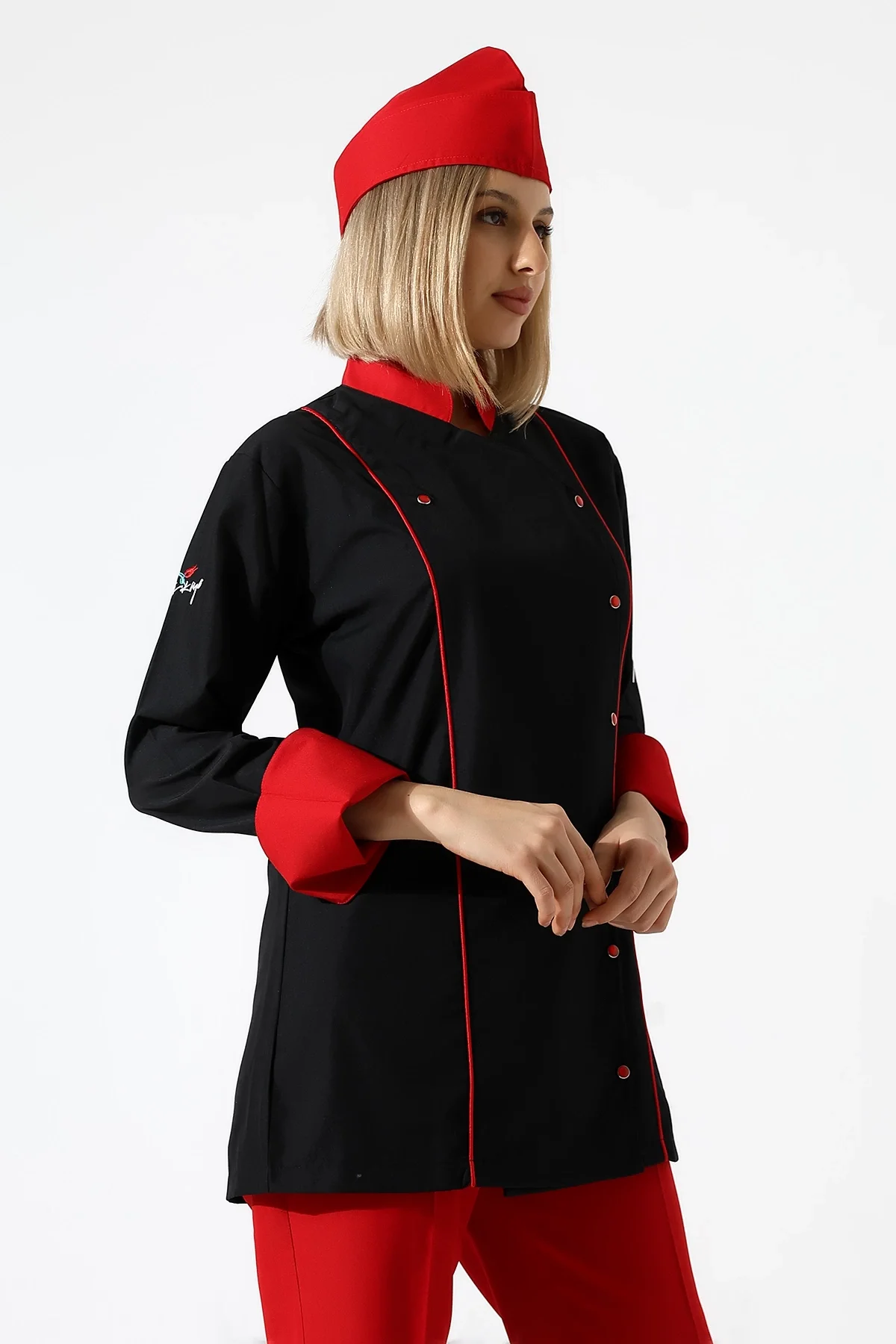 Kadın Aşçı Ceket 01 - Beyaz Siyah Biye