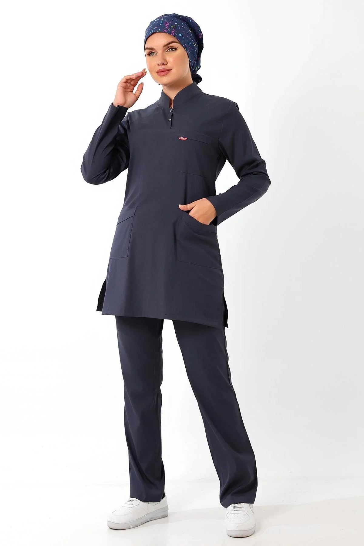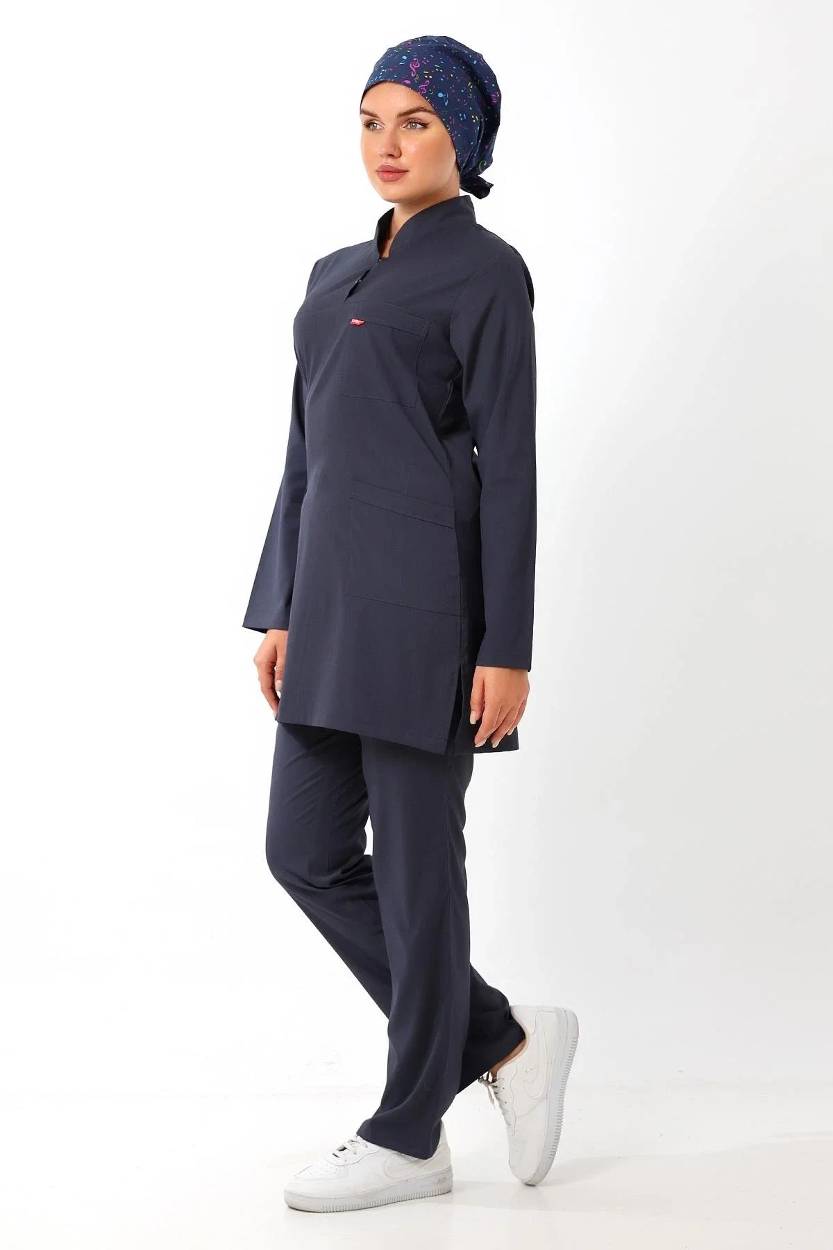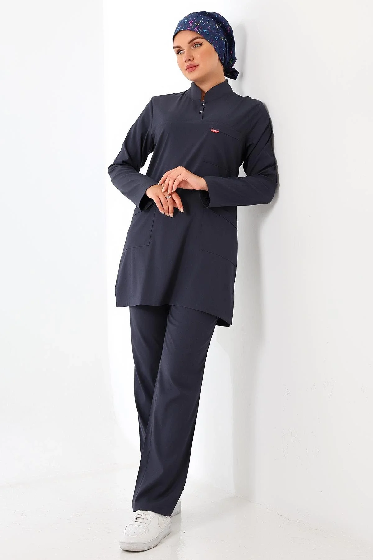 Soft Likralı Tesettür Forma Takım İki Çıtçıt - 6402 Lacivert Soft