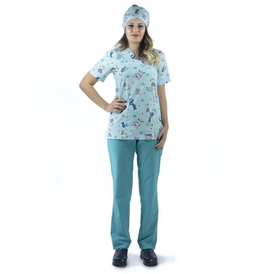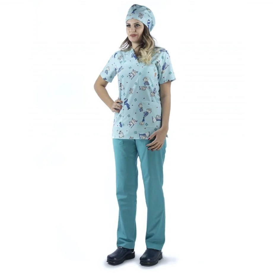 Desenli Tek Üst Scrubs Forma