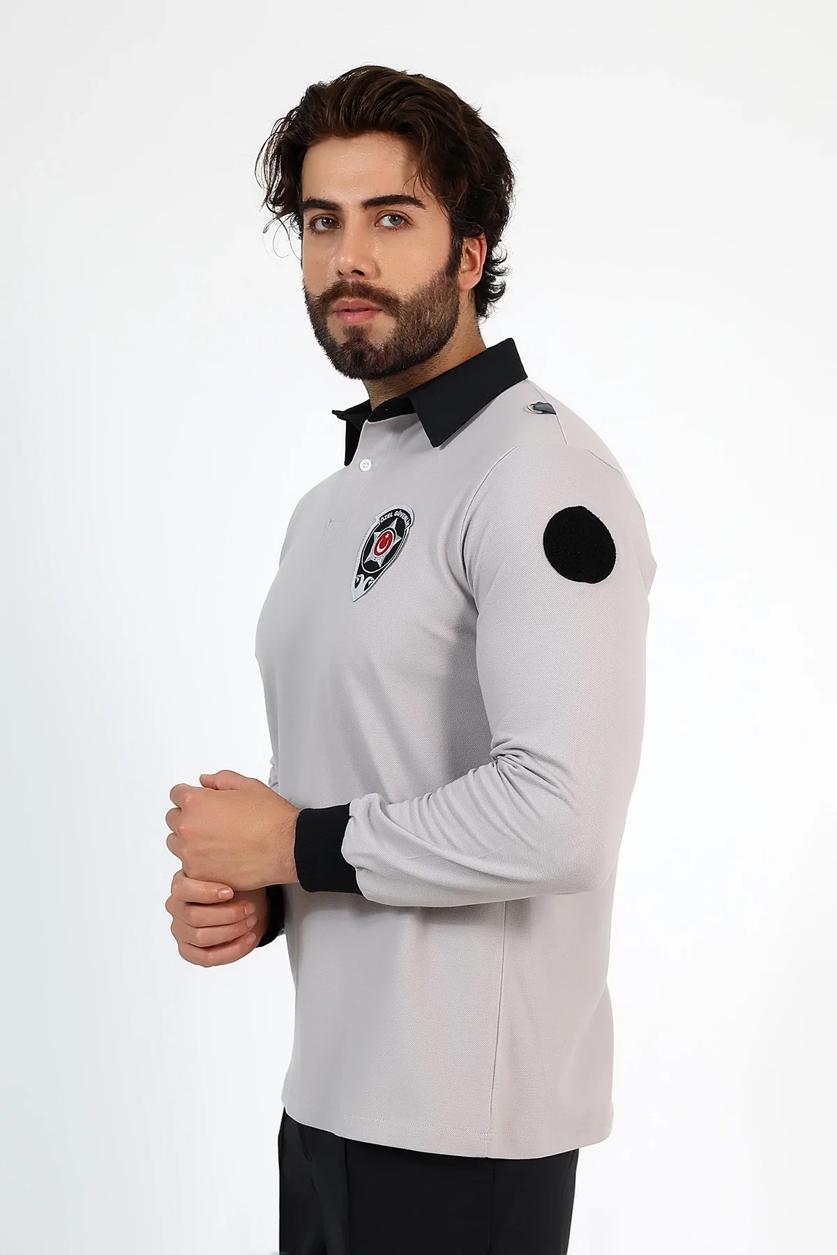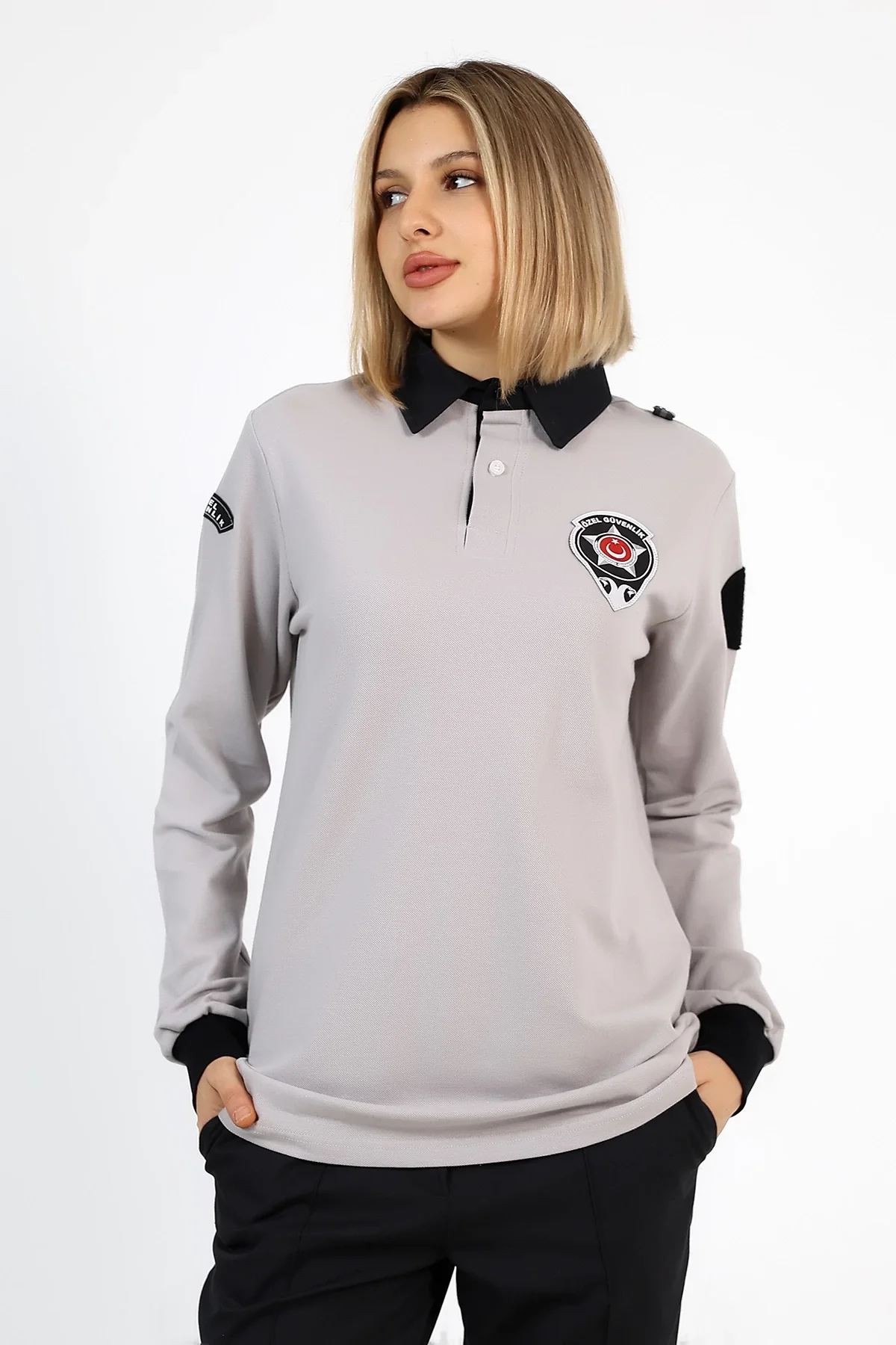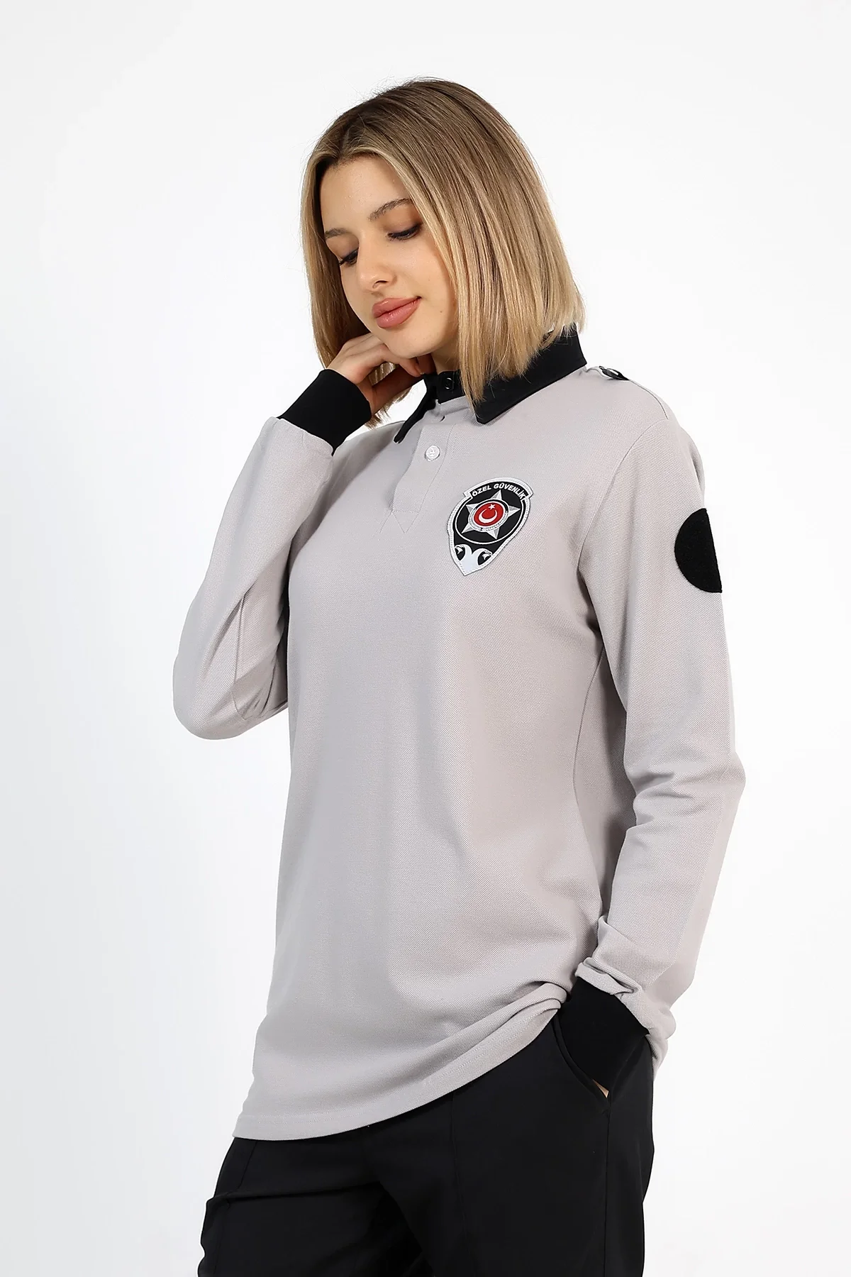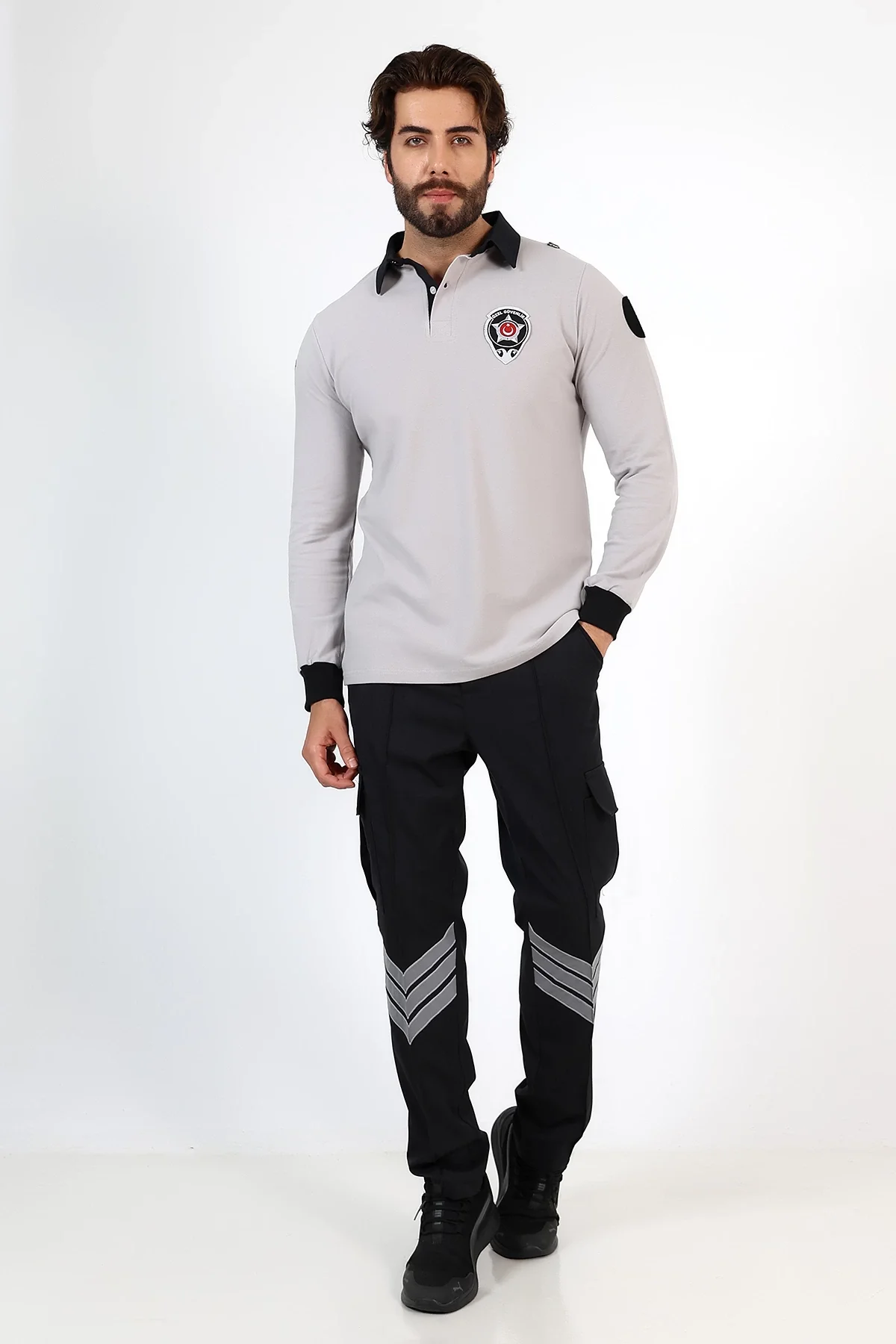 Yepyeni güvenlik tişörtü, pamuklu penye kumaş, uzun kollu ve yakalı tasarımıyla şıklığı güvenlikle birleştiriyor.