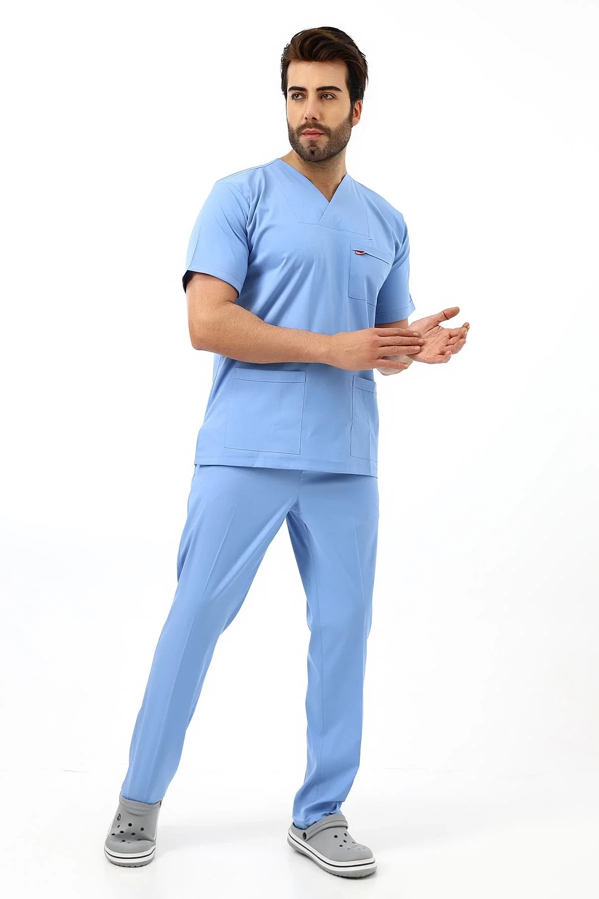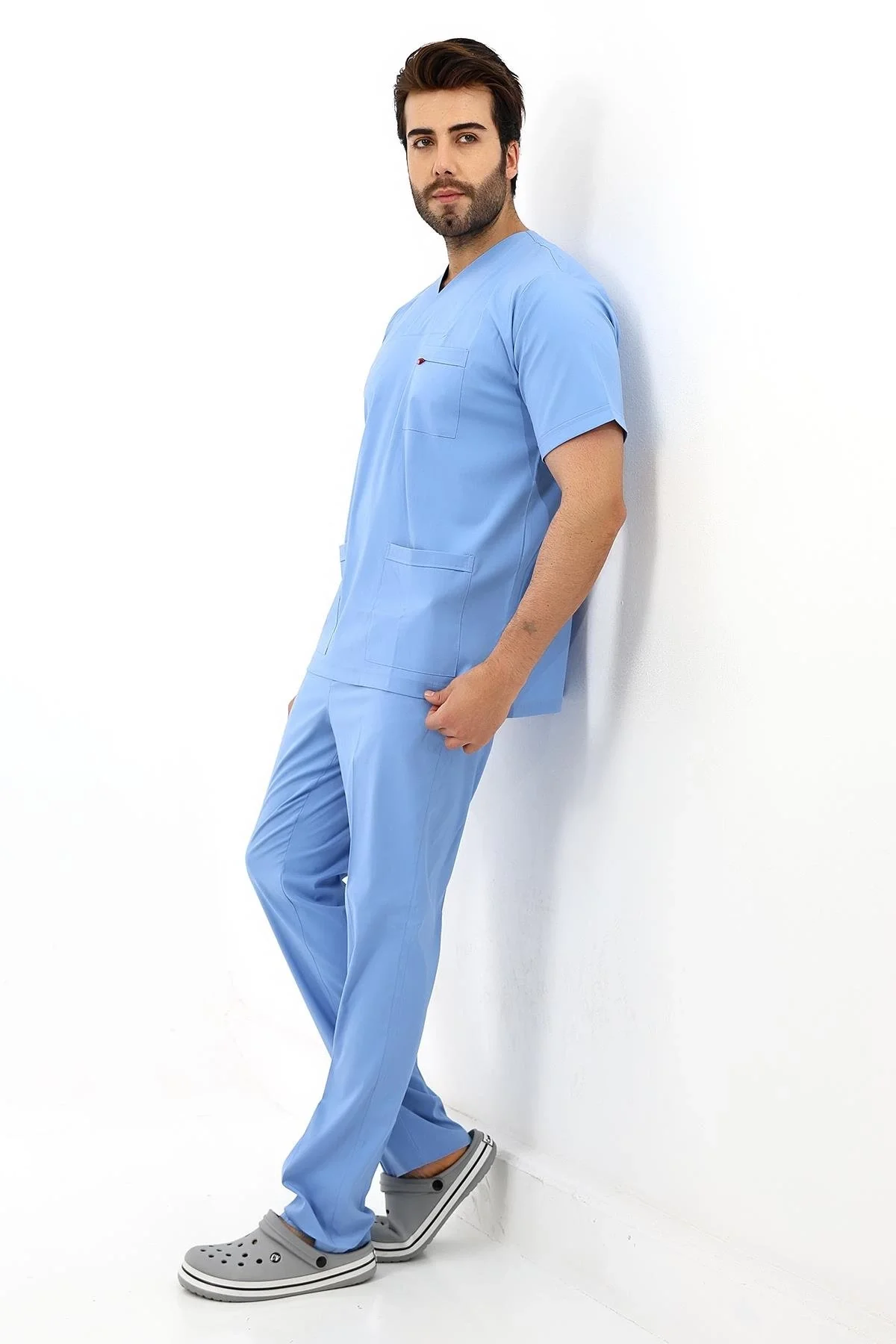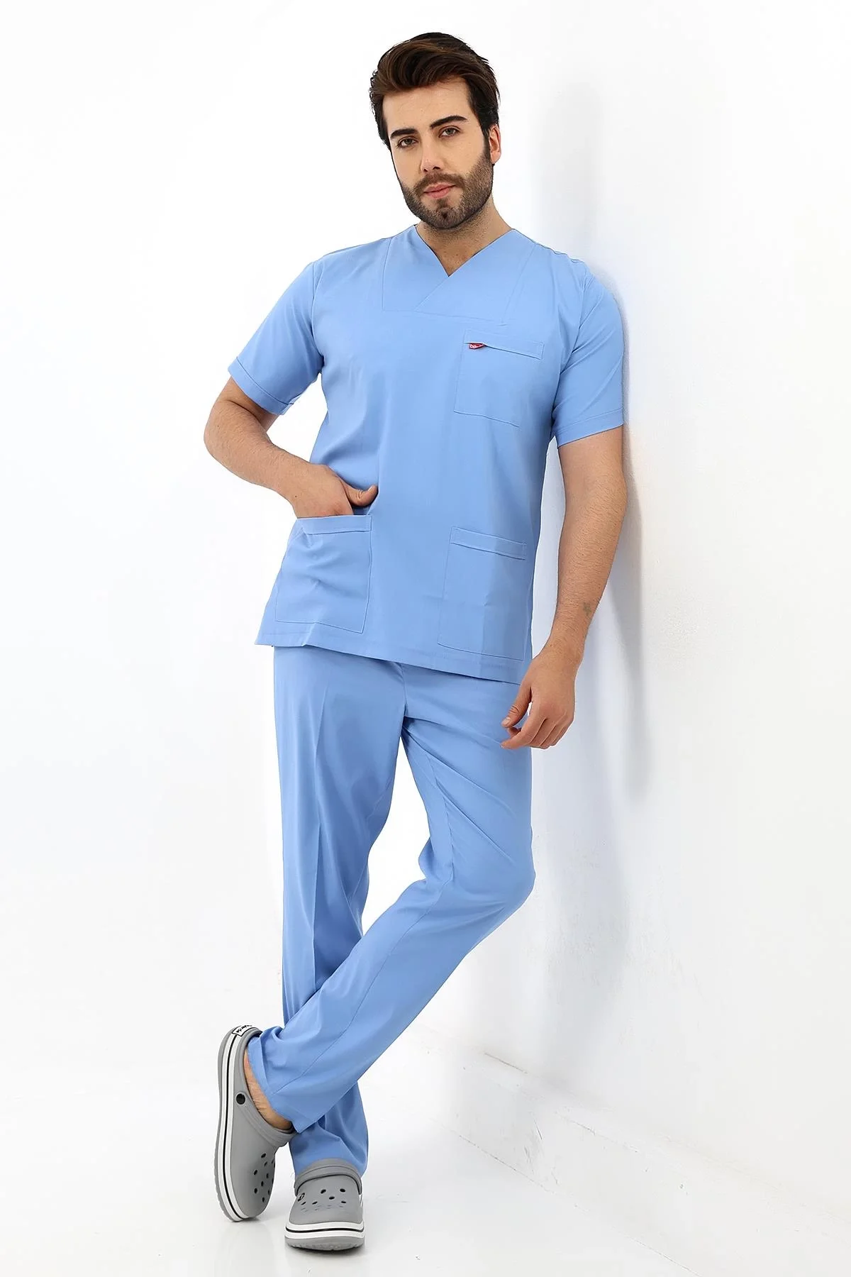 Zarf Yaka Erkek Likralı Takım - 6411 Saks Mavi