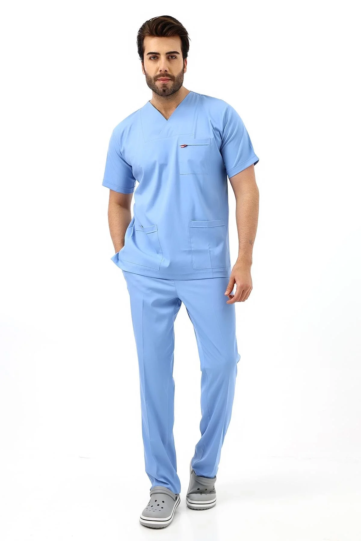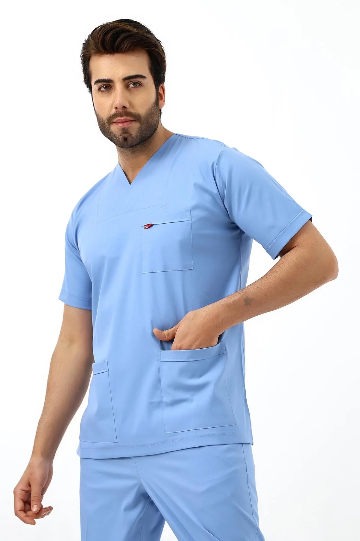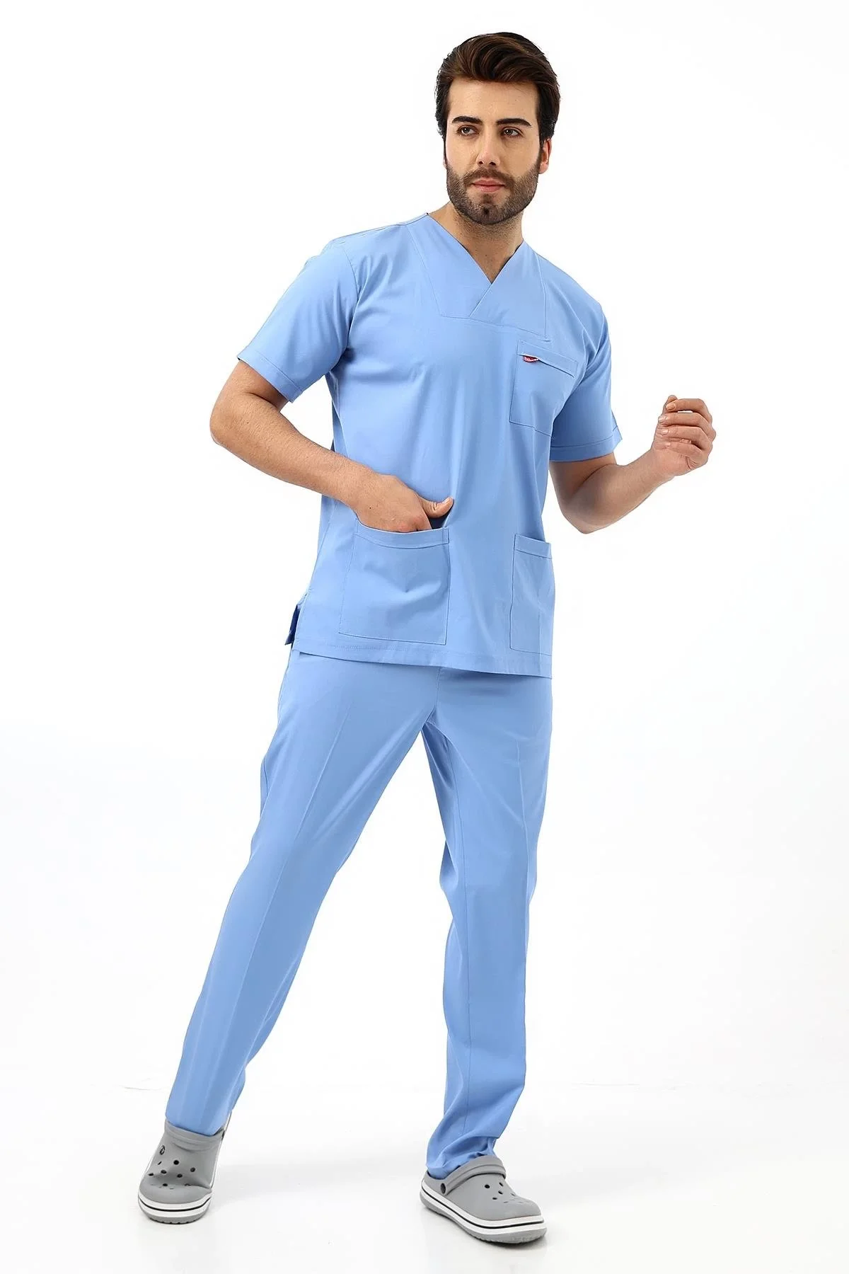 Zarf Yaka Erkek Likralı Takım - 6411 Saks Mavi